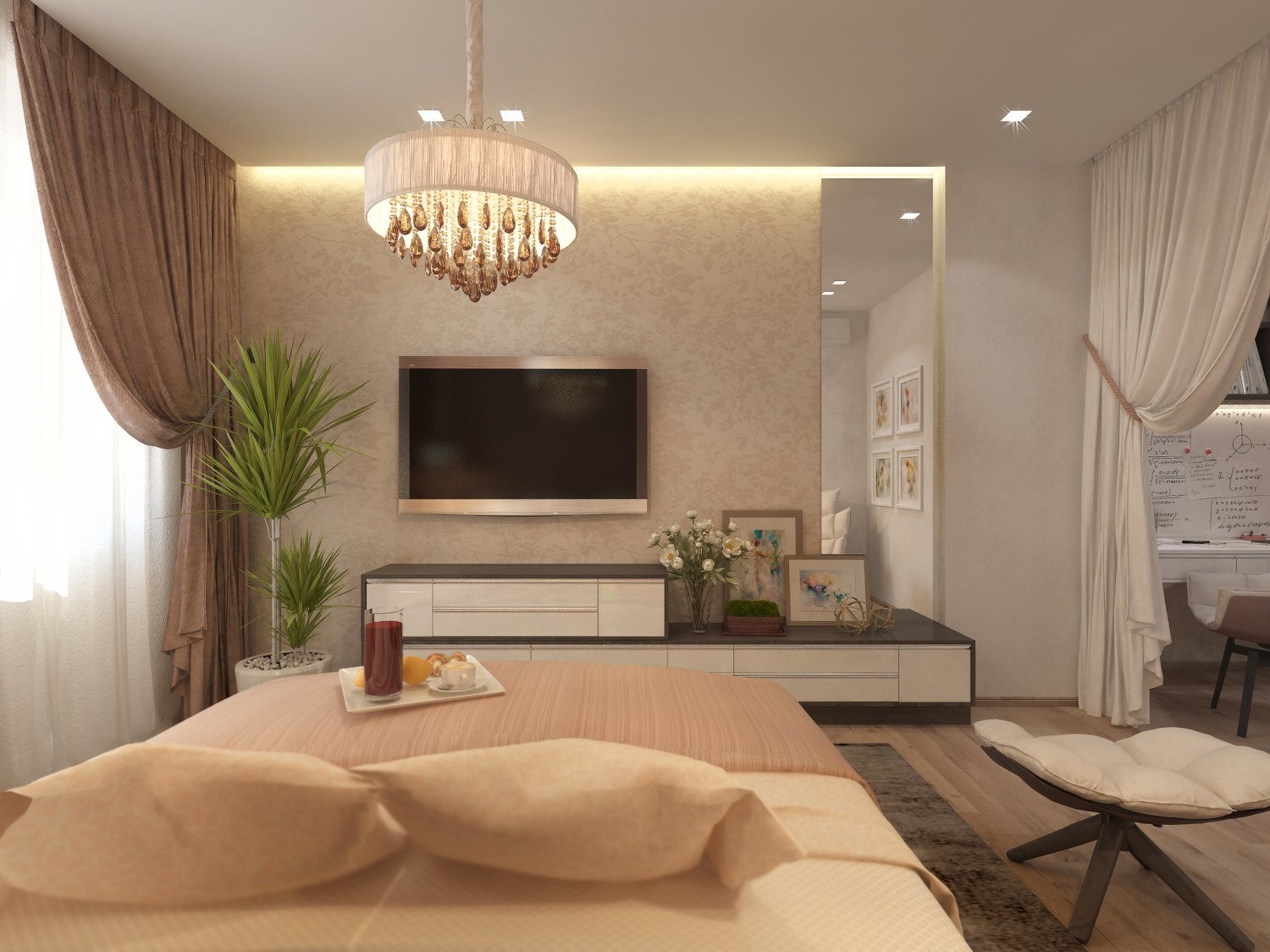 Бежевый цвет спальня-гостиная