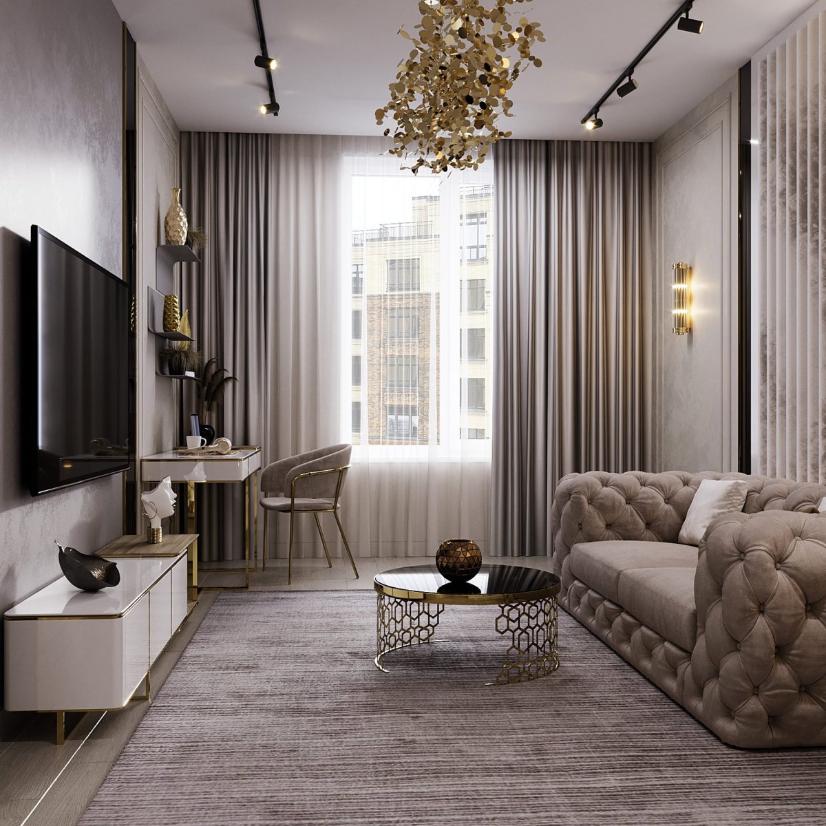 Гостиная в золотисто бежевых тонах