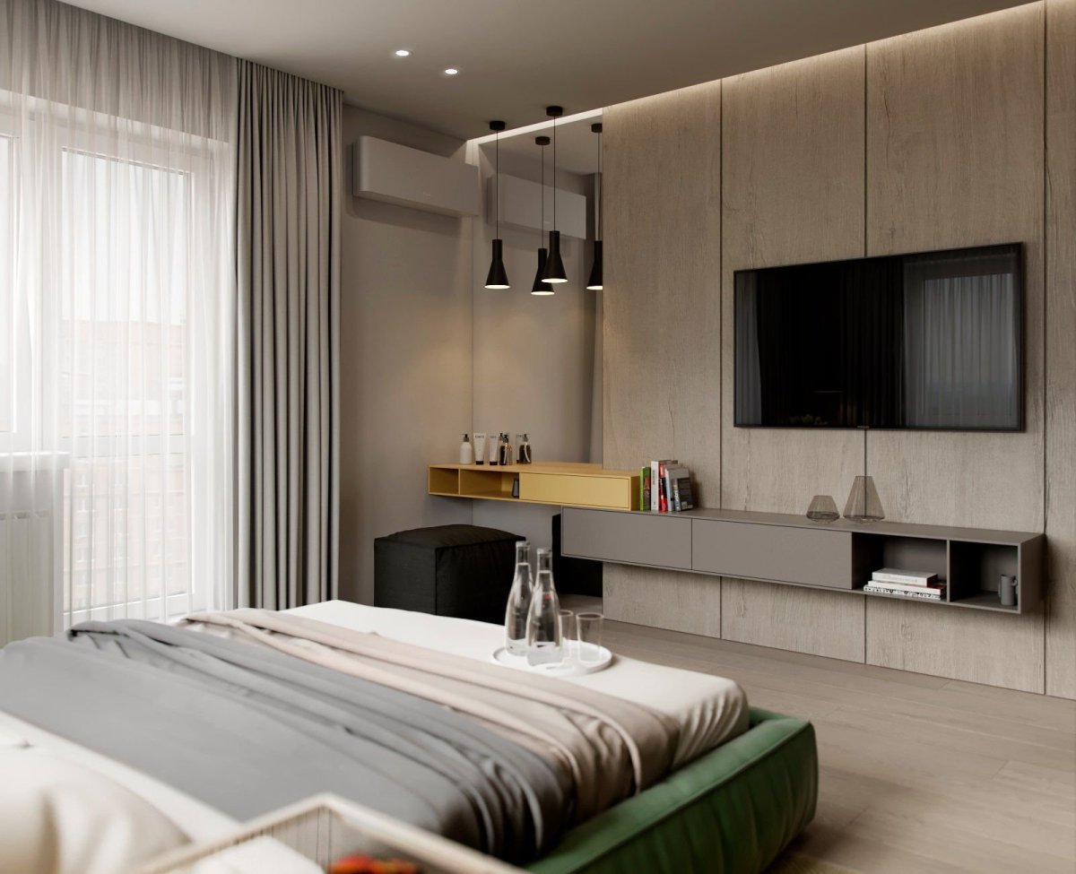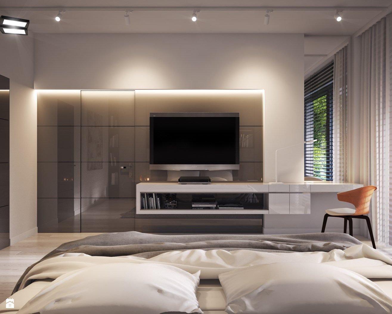 Современная спальня с телевизором