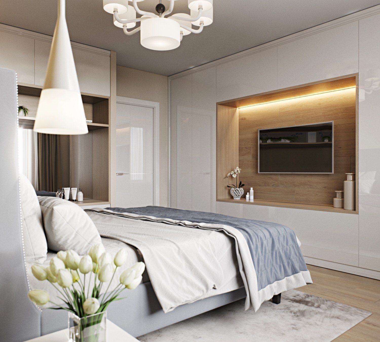 Спальня в современном стиле с телевизором