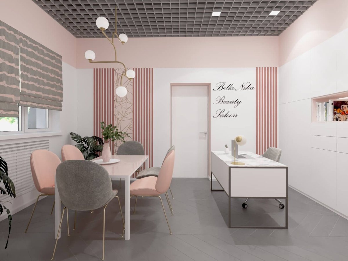 Интерьер салона красоты в розовых тонах
