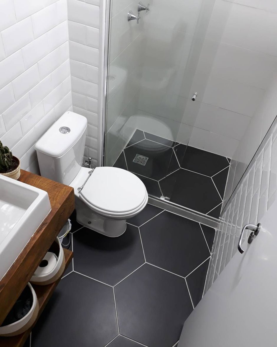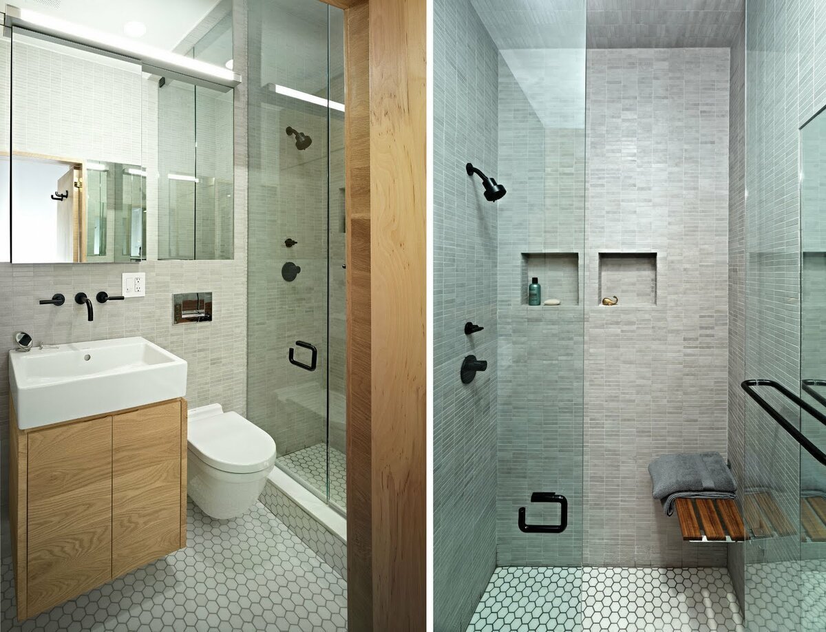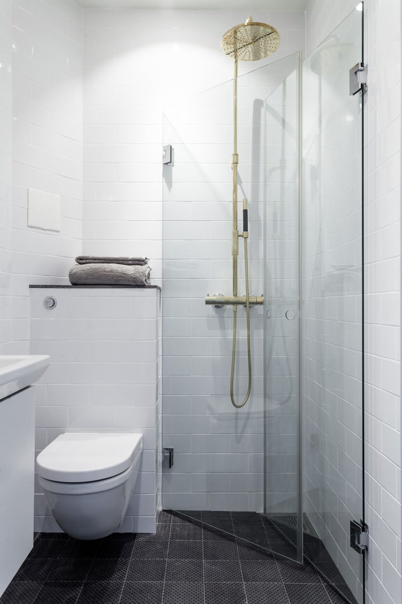 Стильный маленький санузел с душевой