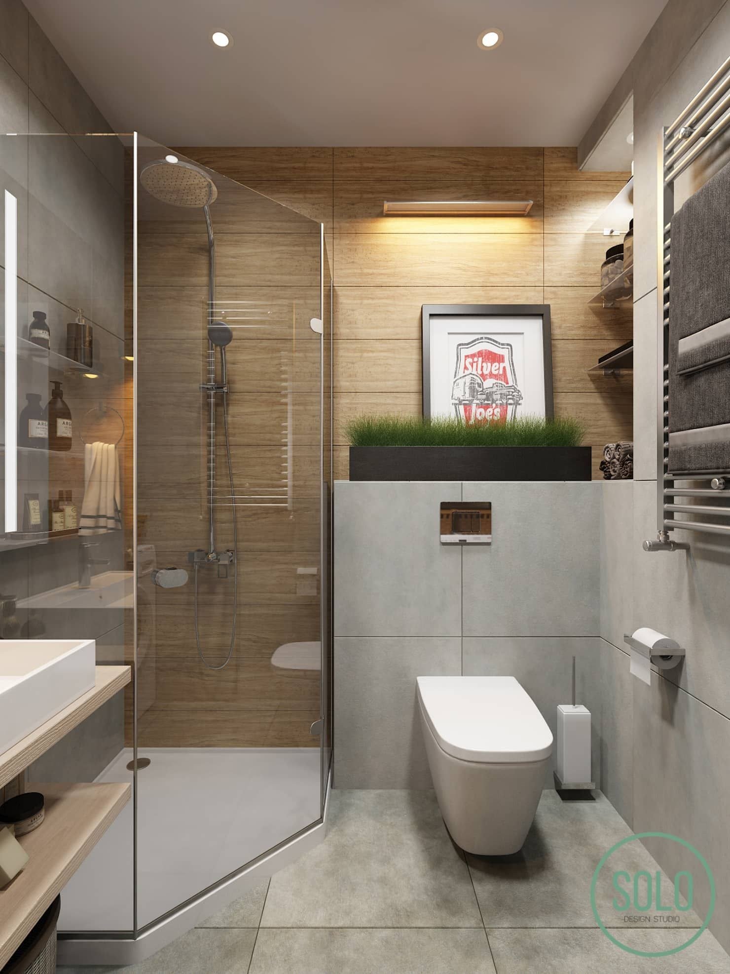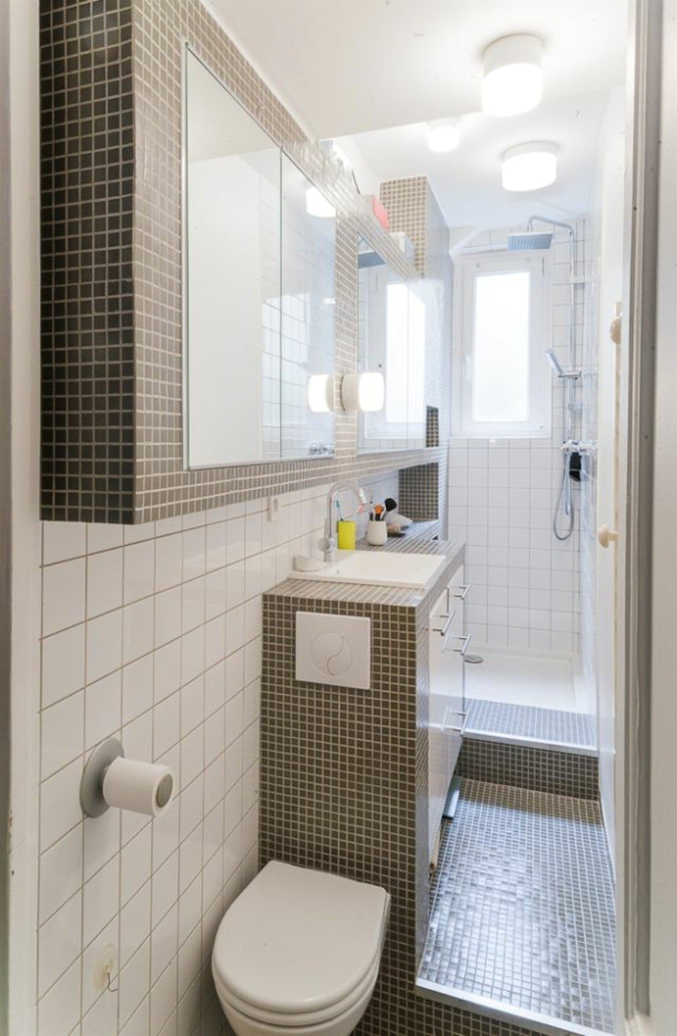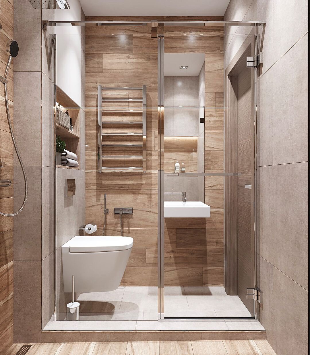 Стильный маленький санузел с душевой