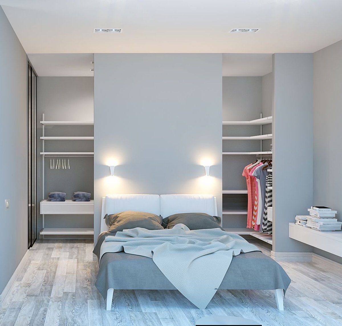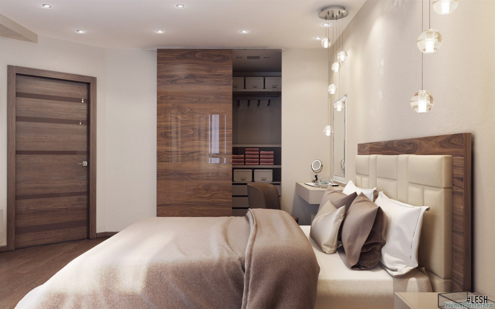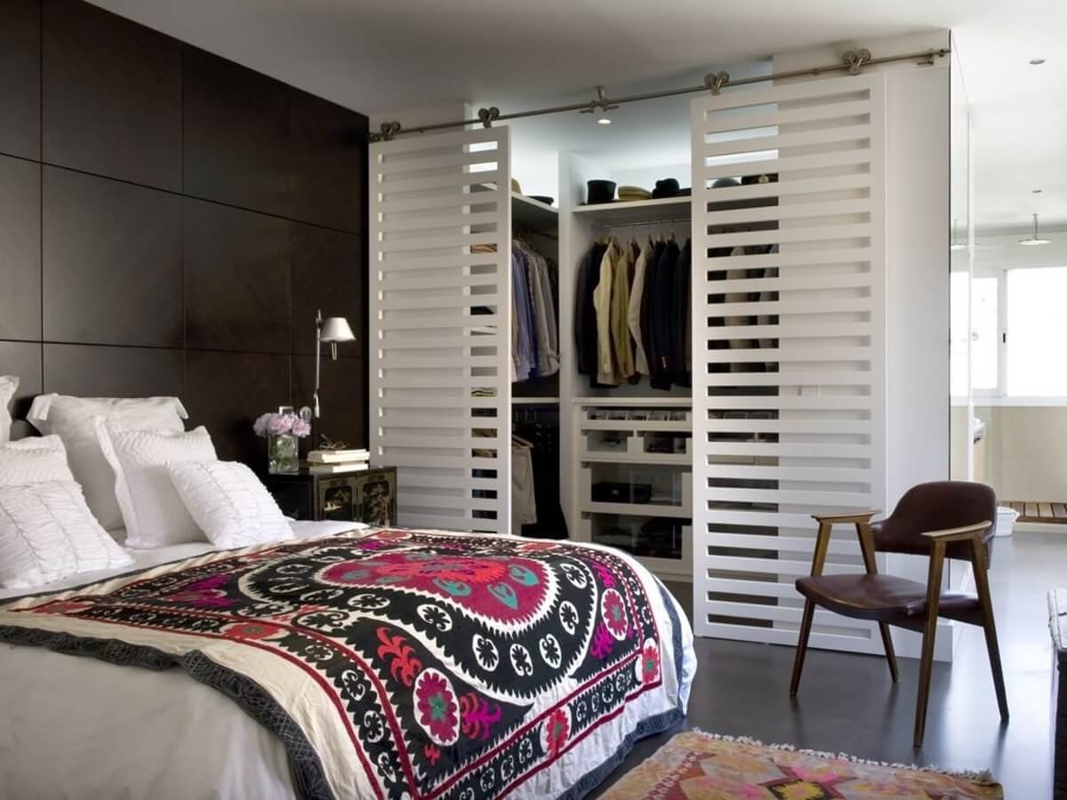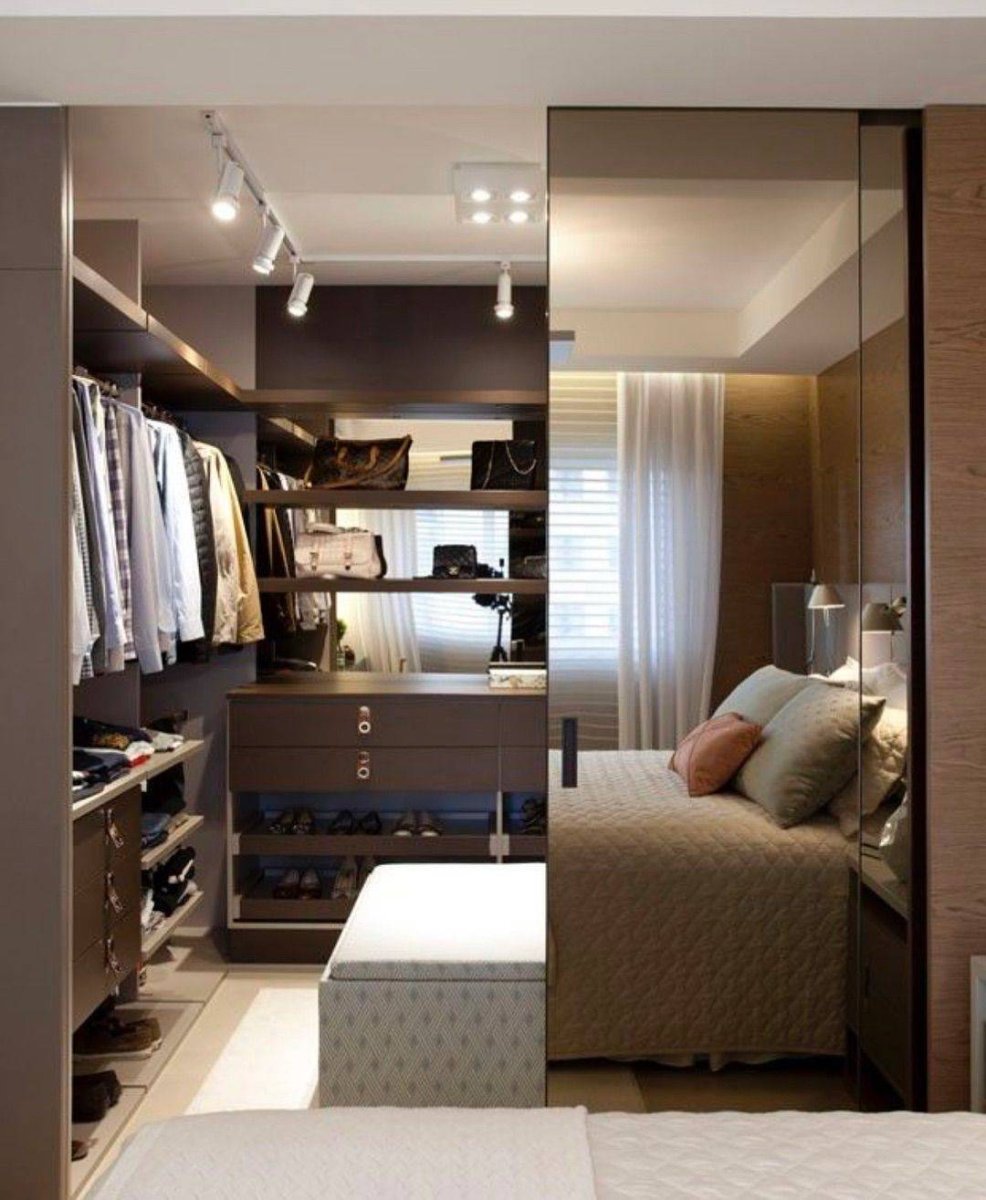 Спальня с гардеробной за кроватью