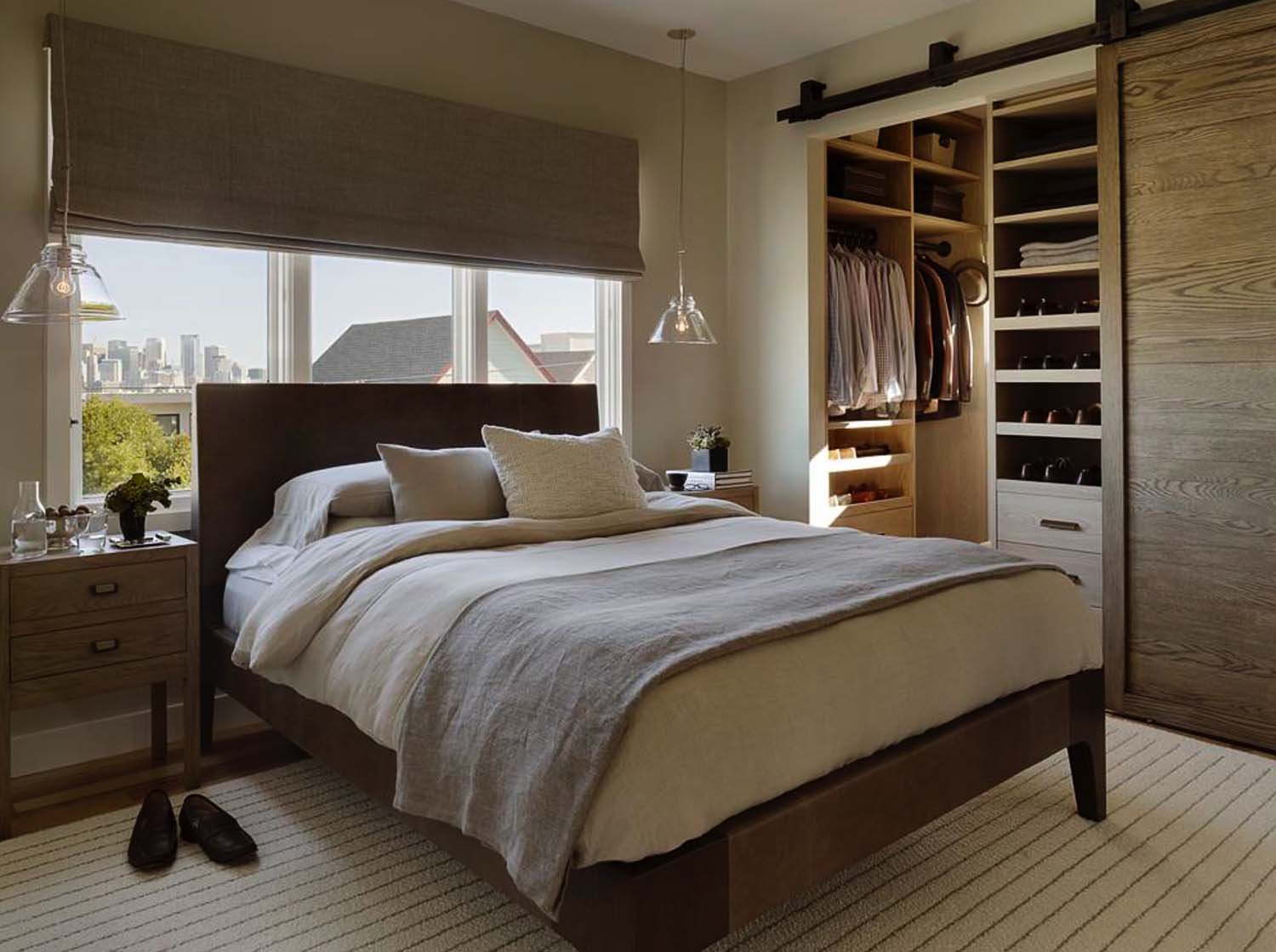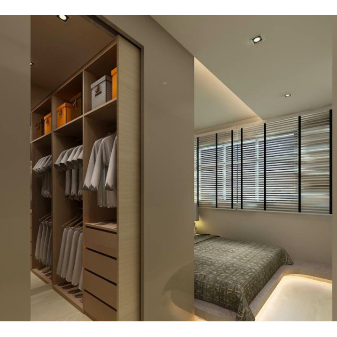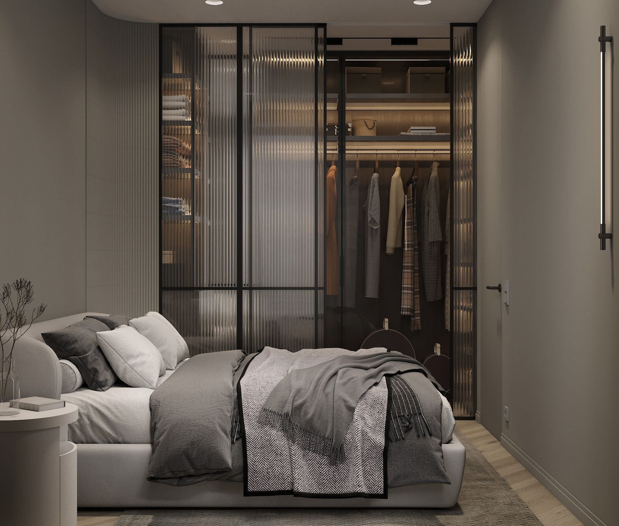 Спальня с гардеробной за кроватью