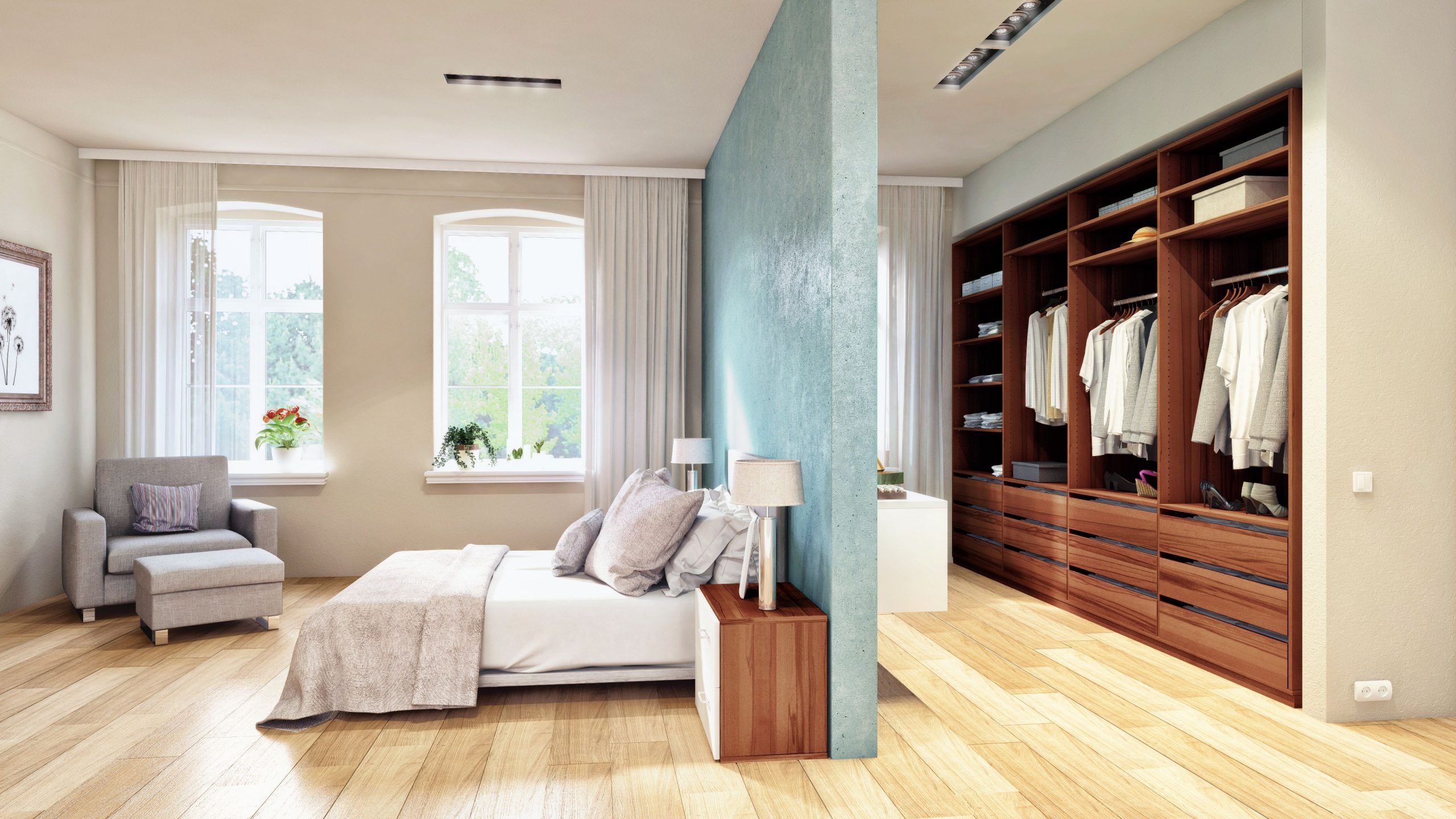 Зонирование комнаты с гардеробной