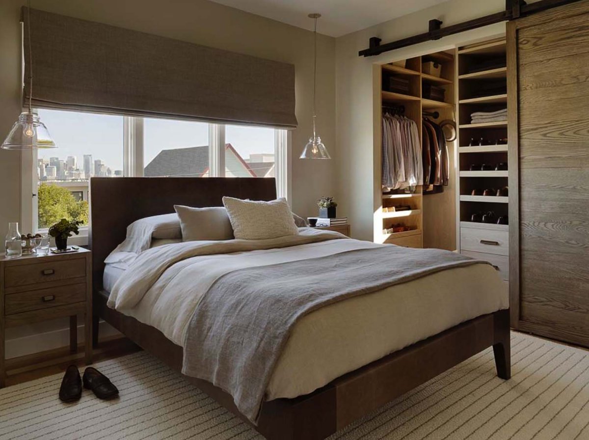 Дизайн маленькой спальни с гардеробной
