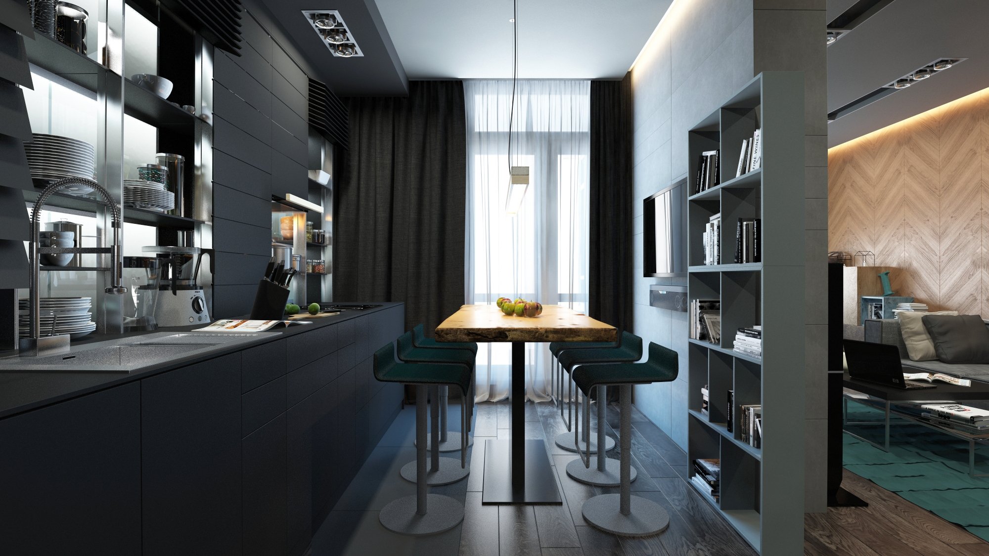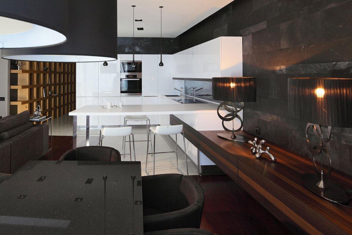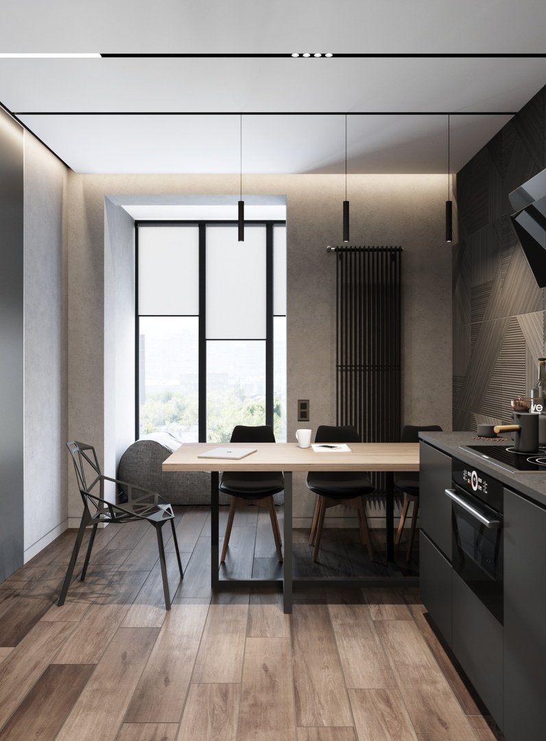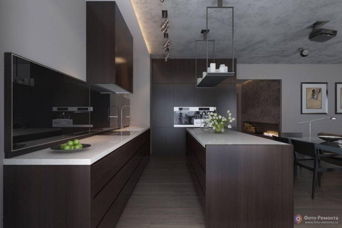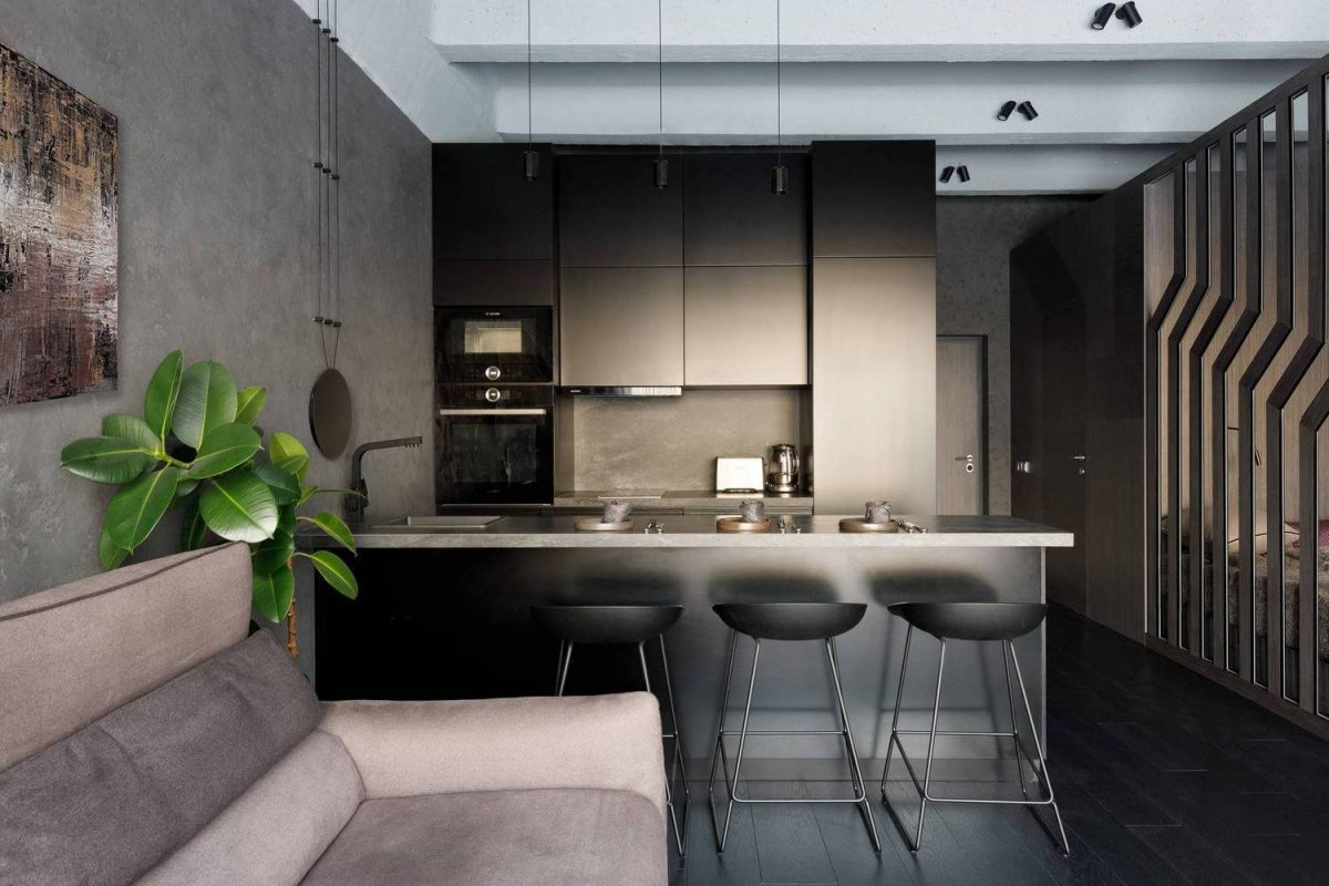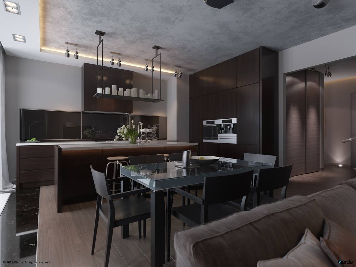 Кухня гостиная в темных тонах
