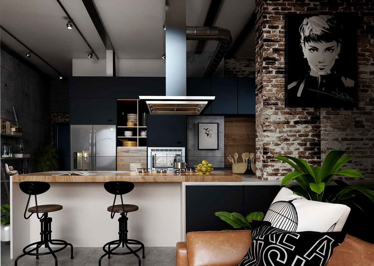 Кухня в стиле лофт и хайтек
