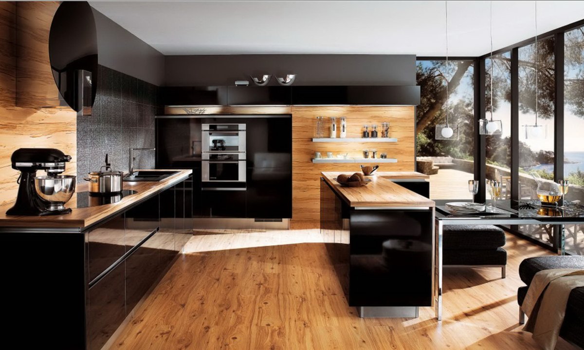 Кухня черная с деревом