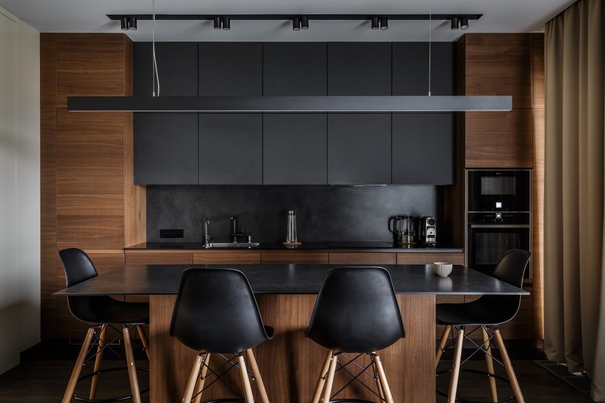 Кухня в темных тонах в современном стиле
