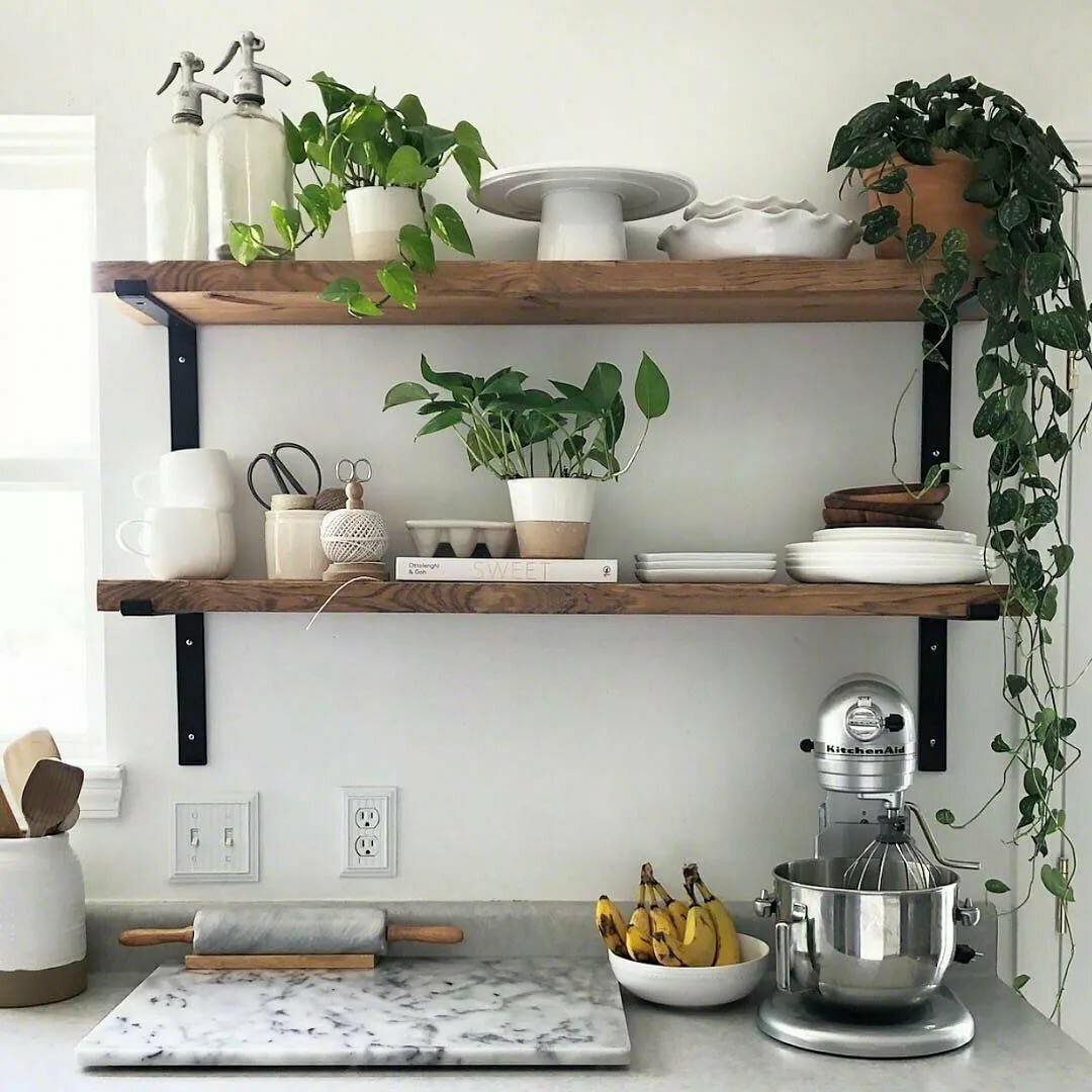 Открытые полочки на кухне