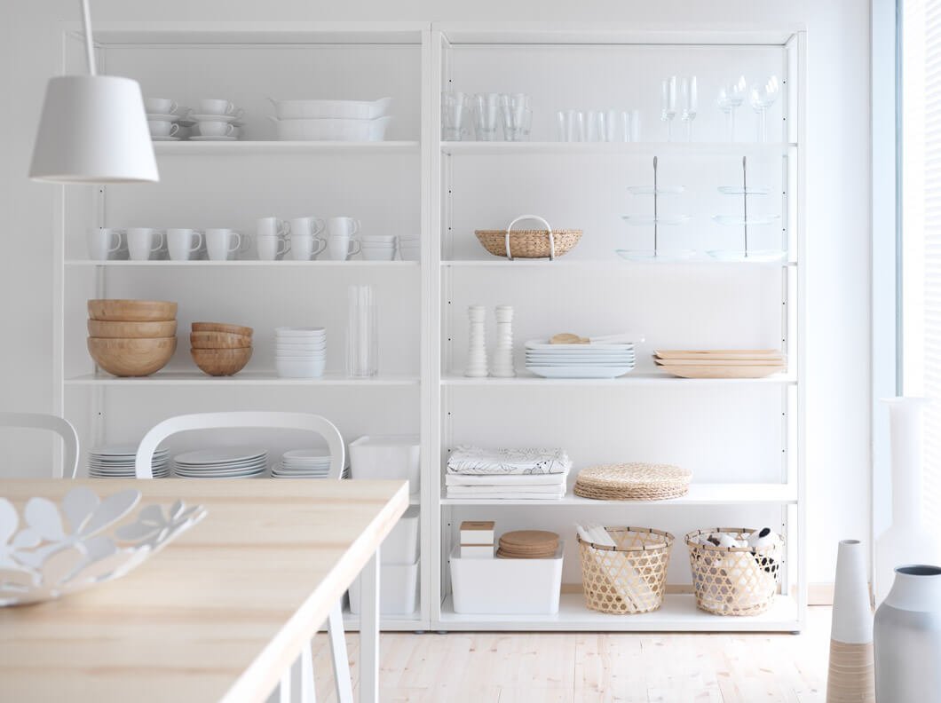 Открытые стеллажи для кухни в икеа