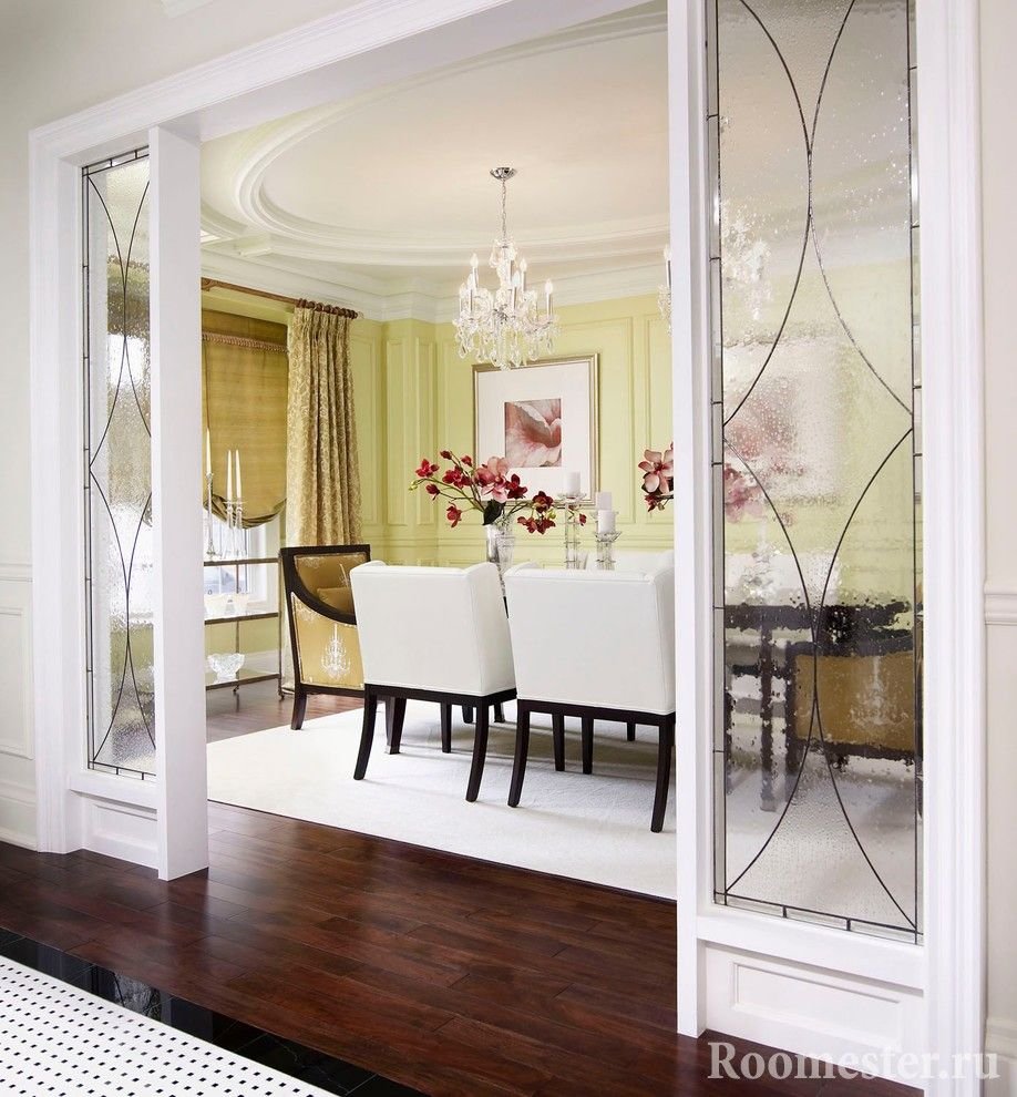 Стеклянные перегородки для зонирования пространства в комнате
