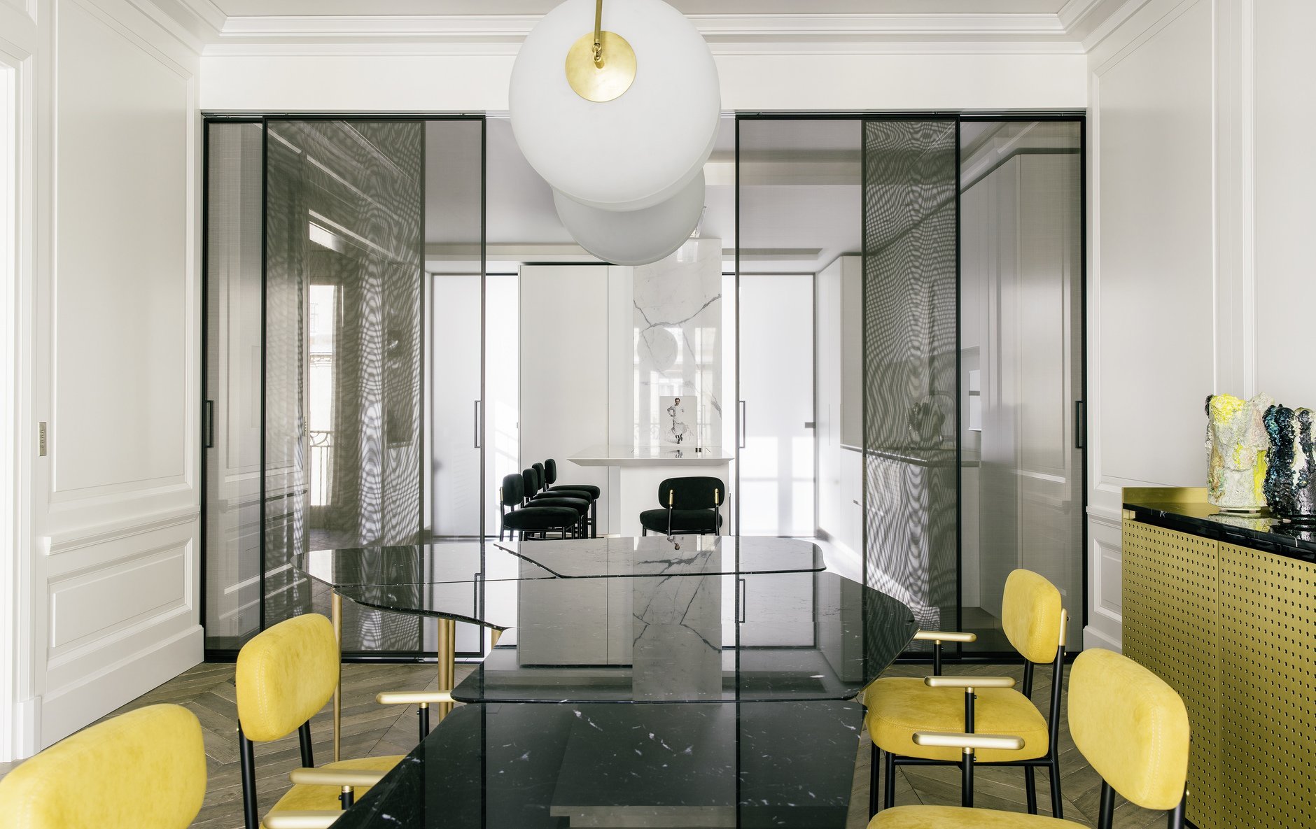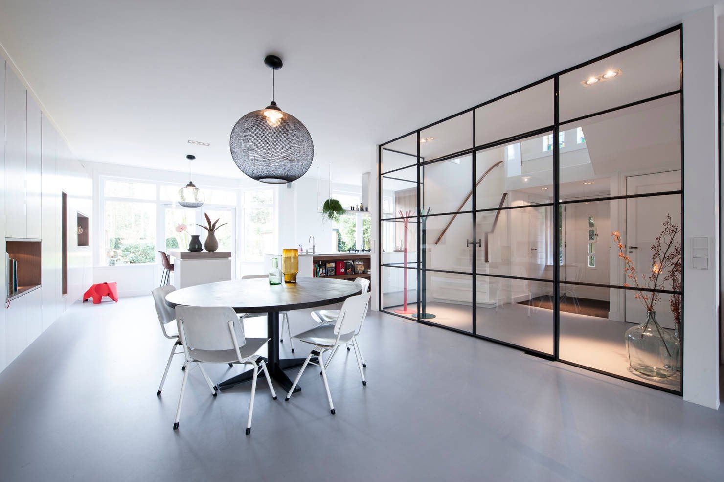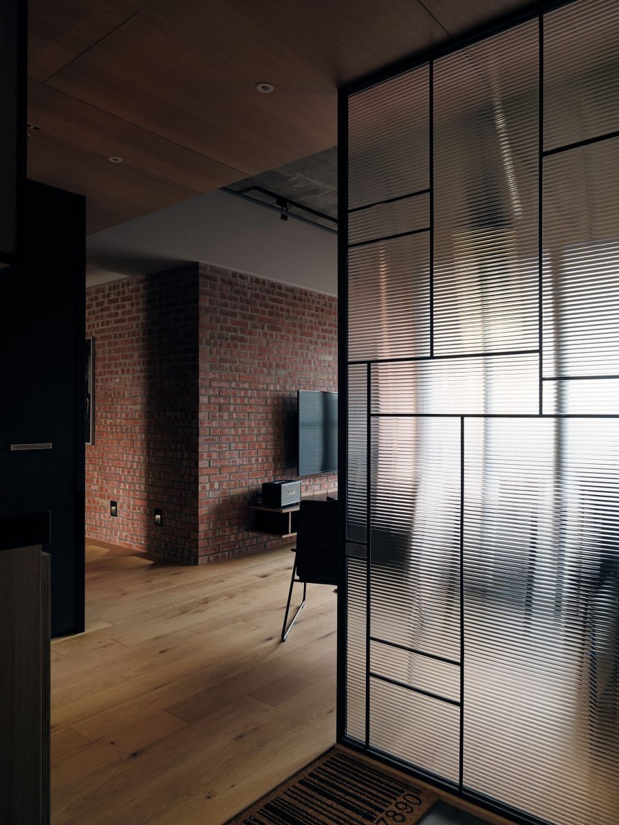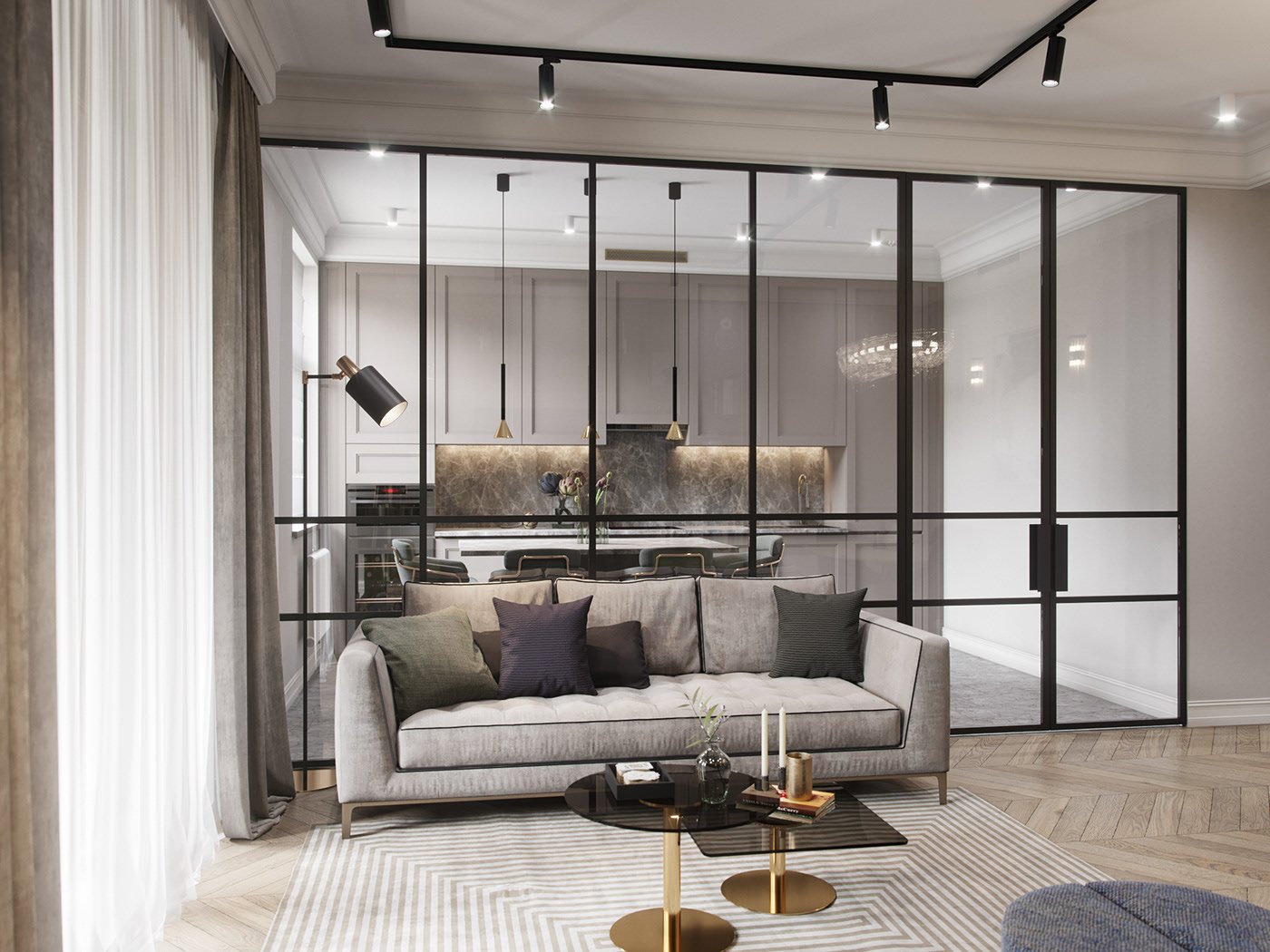Прозрачная перегородка между кухней и гостиной