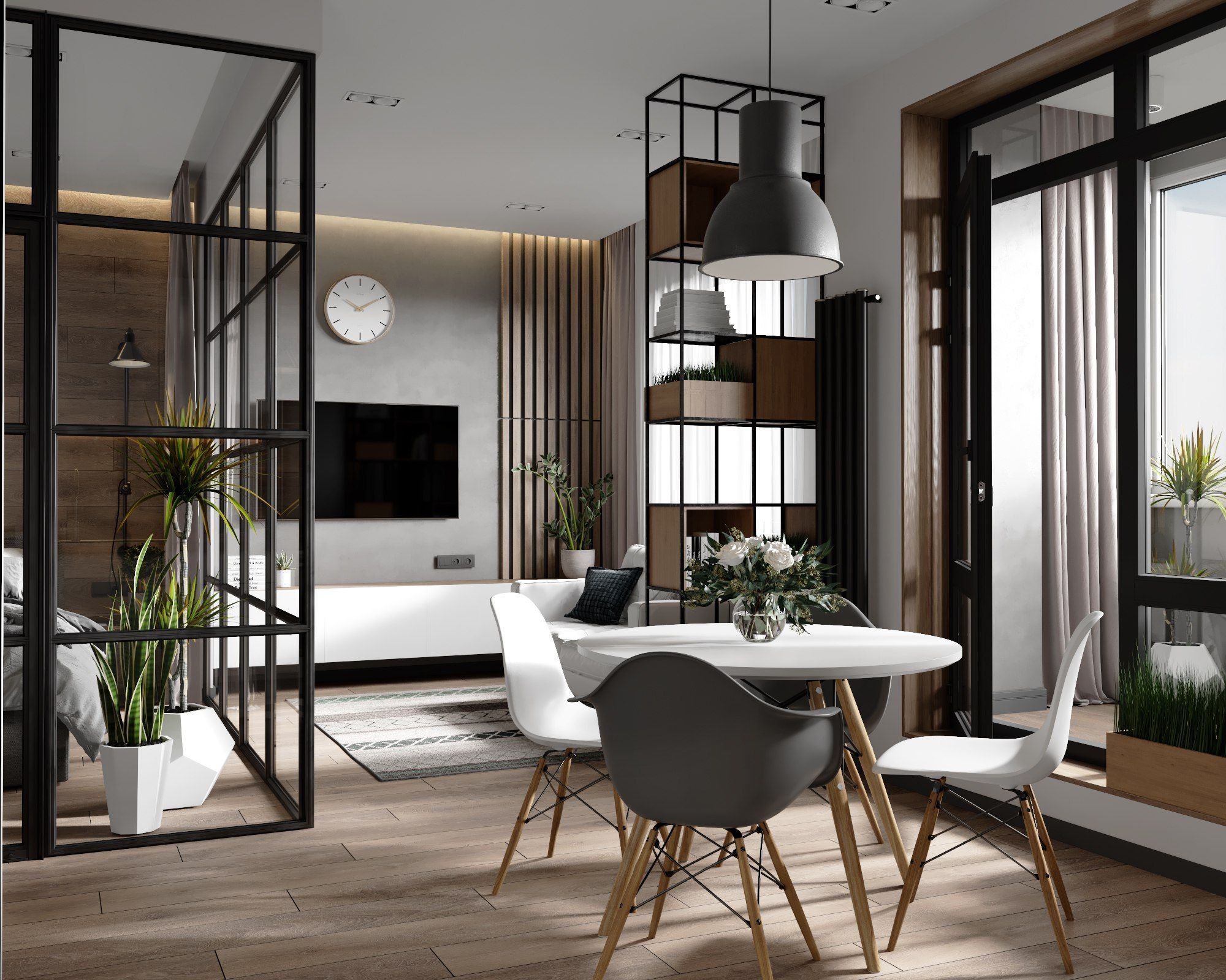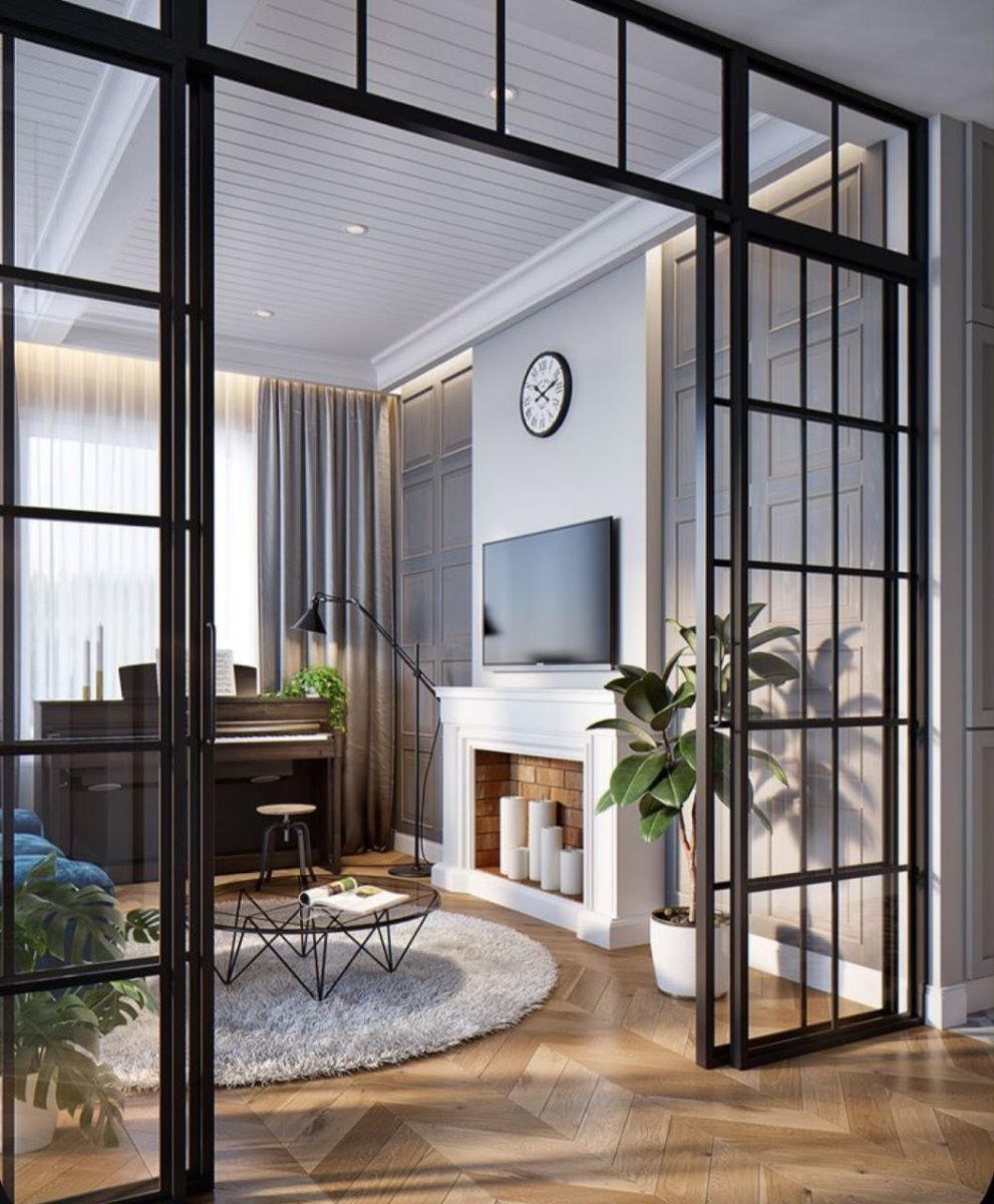 Панорамные окна двери разделяющие комнату