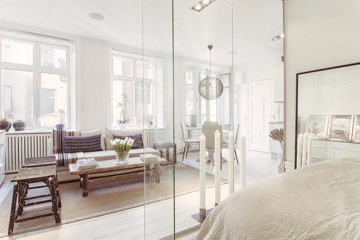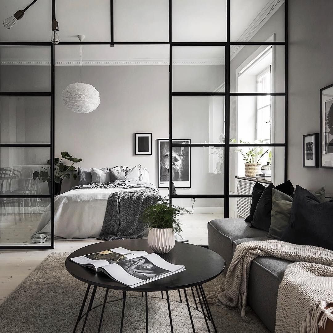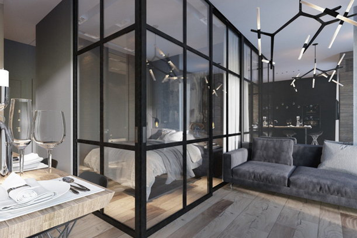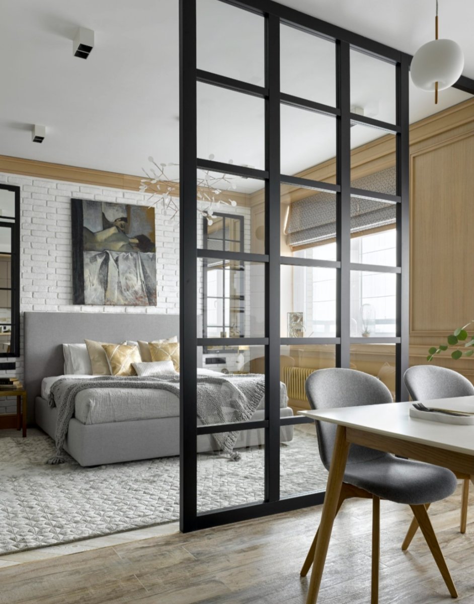 Спальня гостиная со стеклянной перегородкой