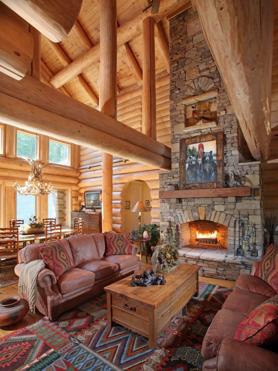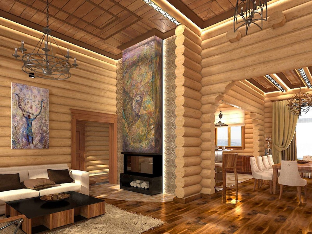 Интерьер дом из оцилиндрованного бревна внутри дома