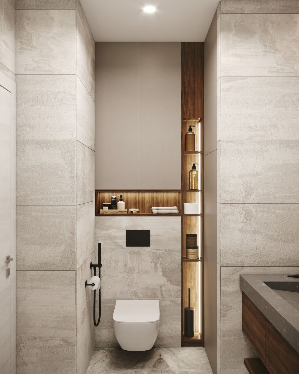 Встроенные полки в туалете
