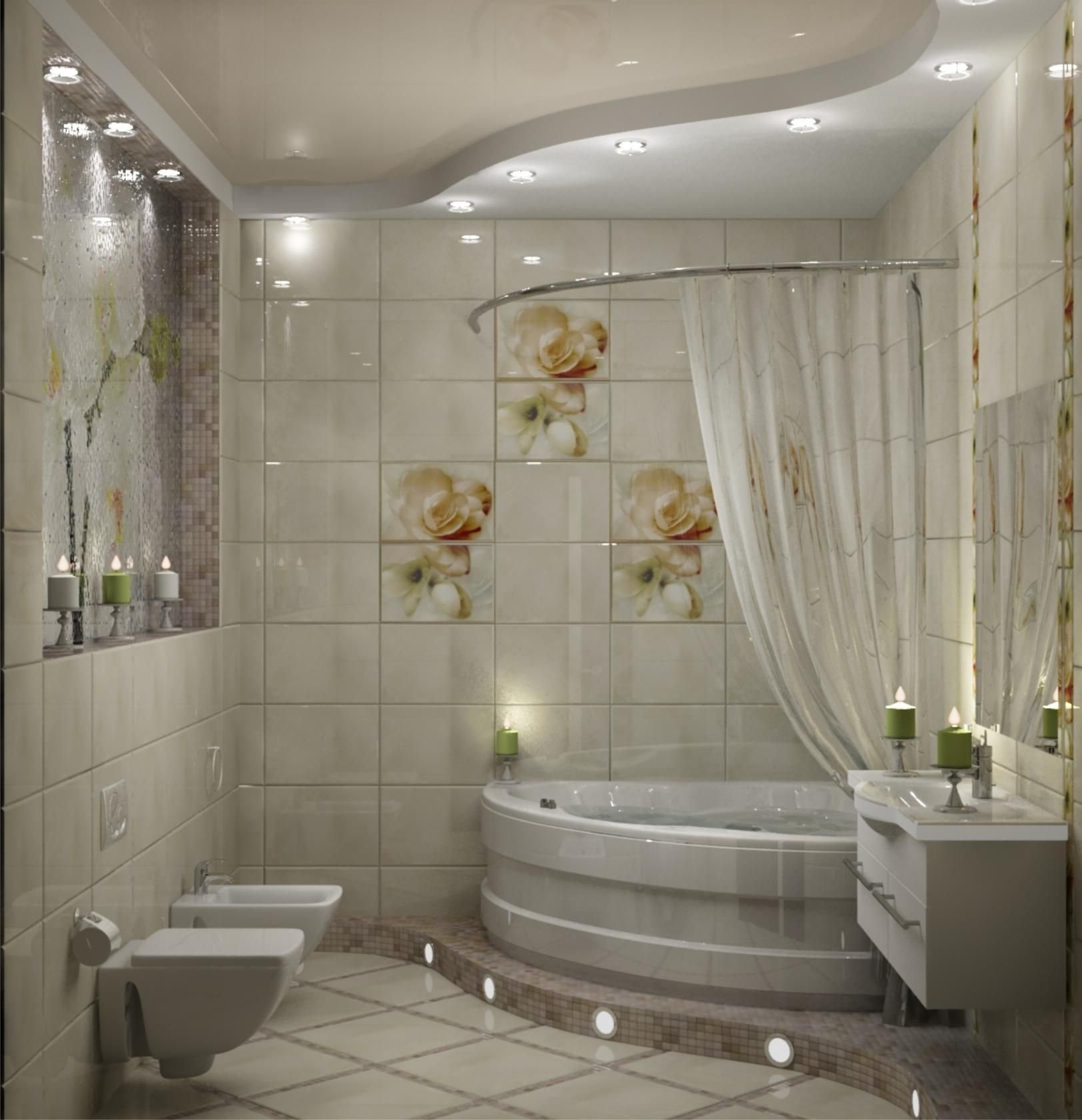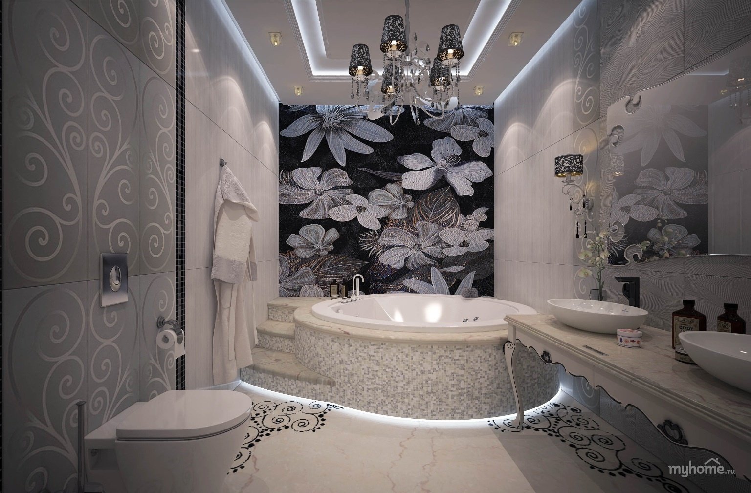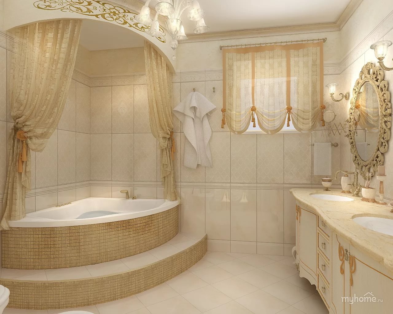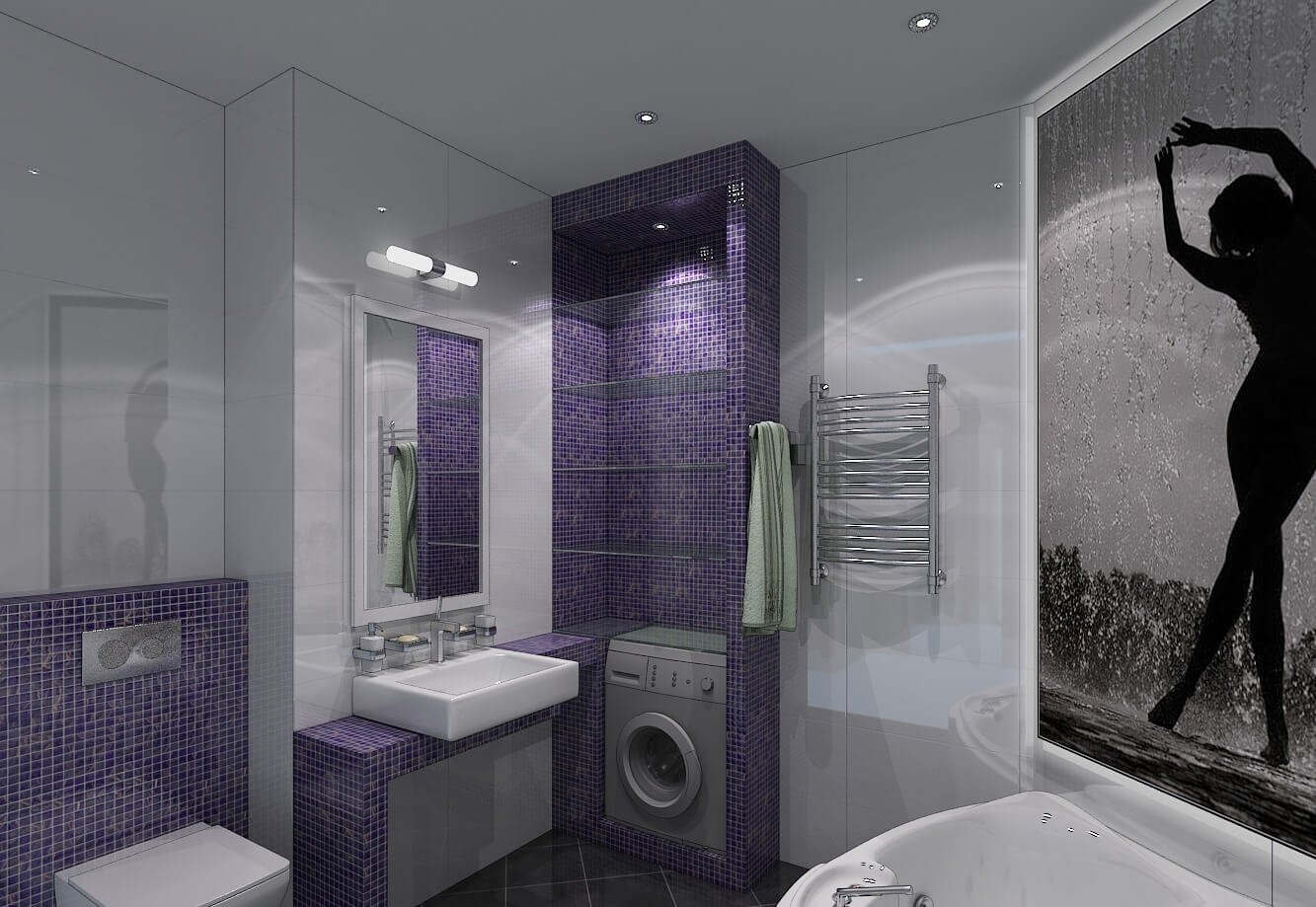 Ванная комната с угловой ванной и туалетом 4 кв.м под мрамор