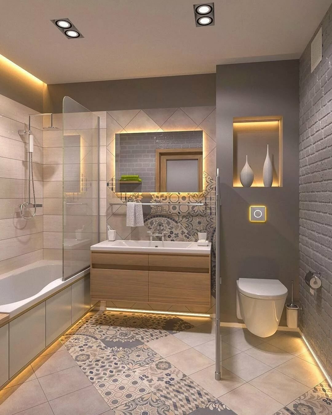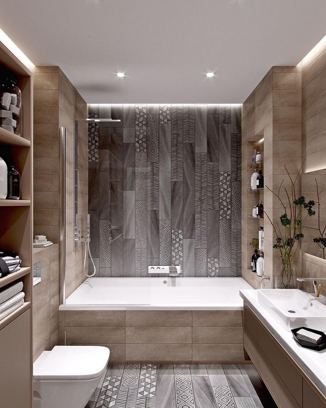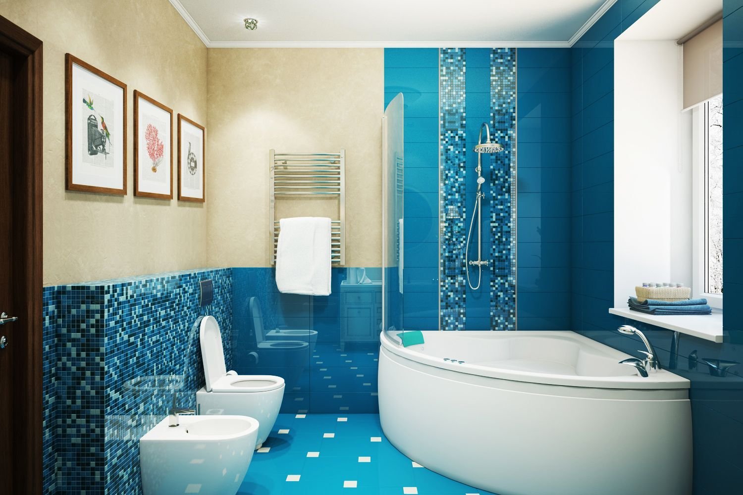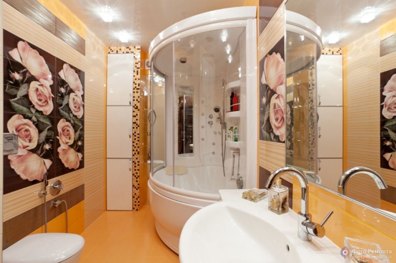 Ванная комната с угловой ванной и туалетом 4 кв.м под мрамор