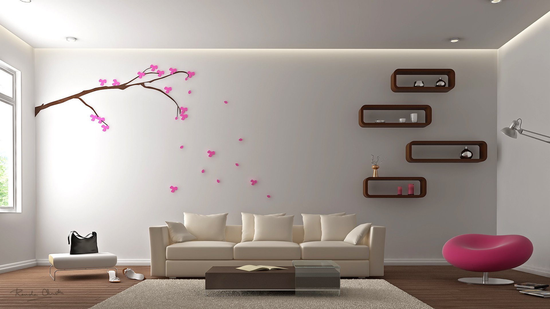 Интерьер квартиры Минимализм голубой цвет пустая стена