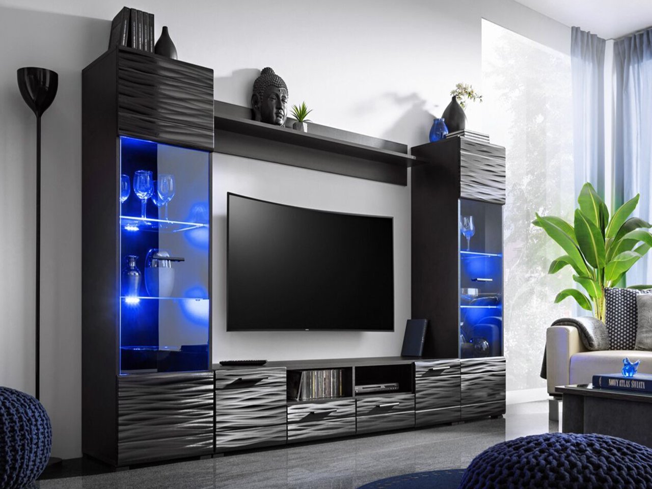 Стенка (гостиная) blade4, черный / глянец "сахара"