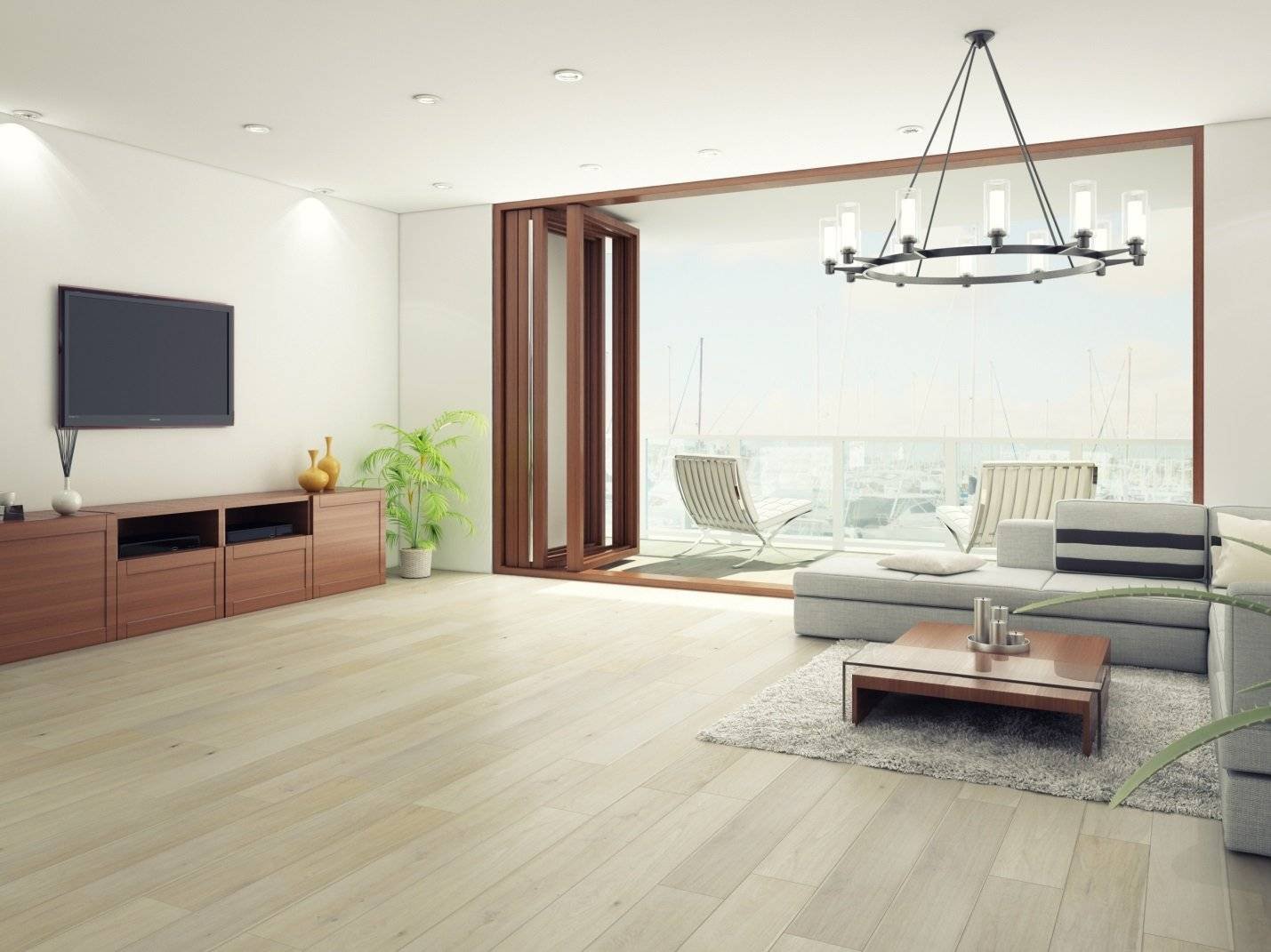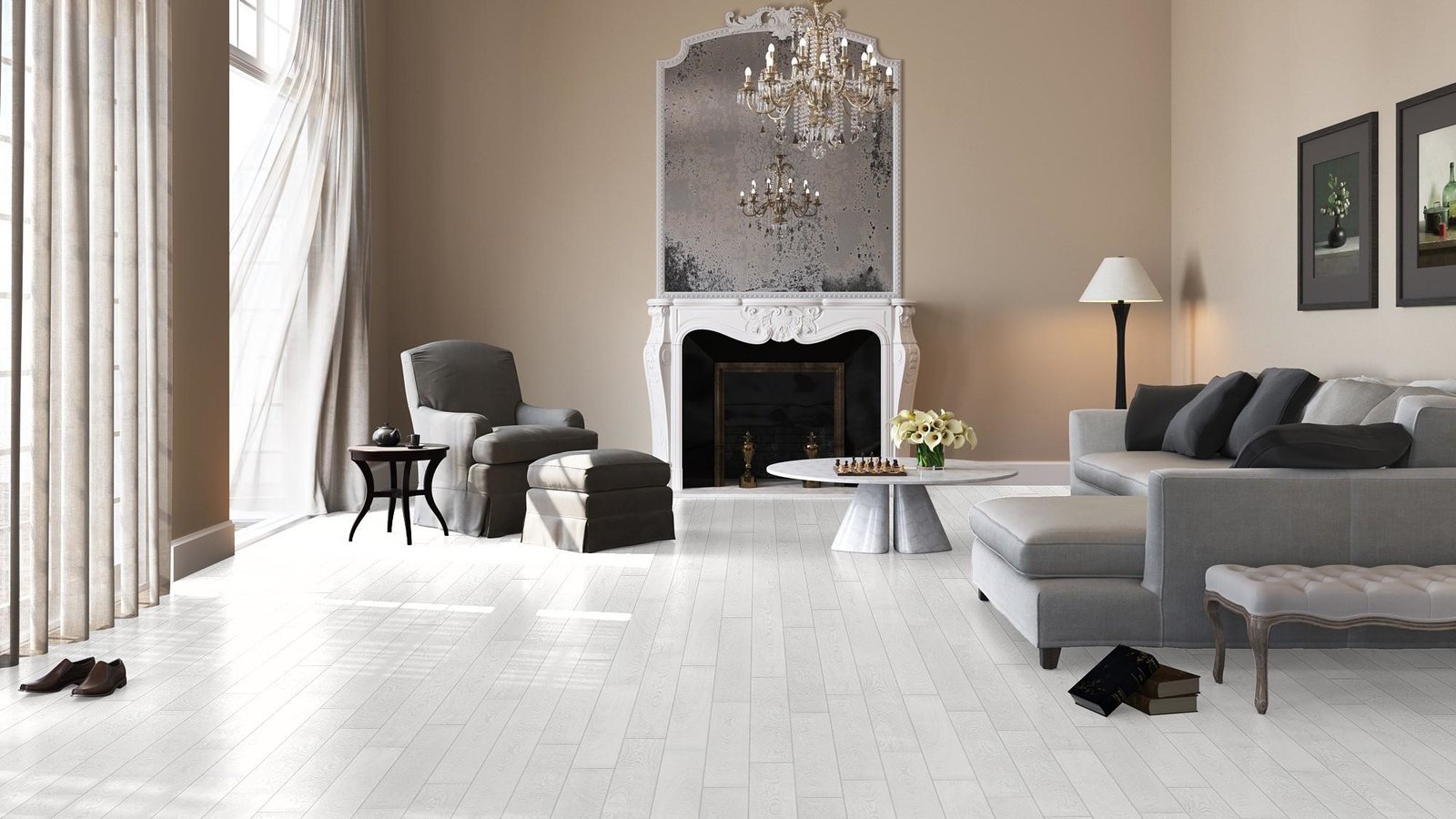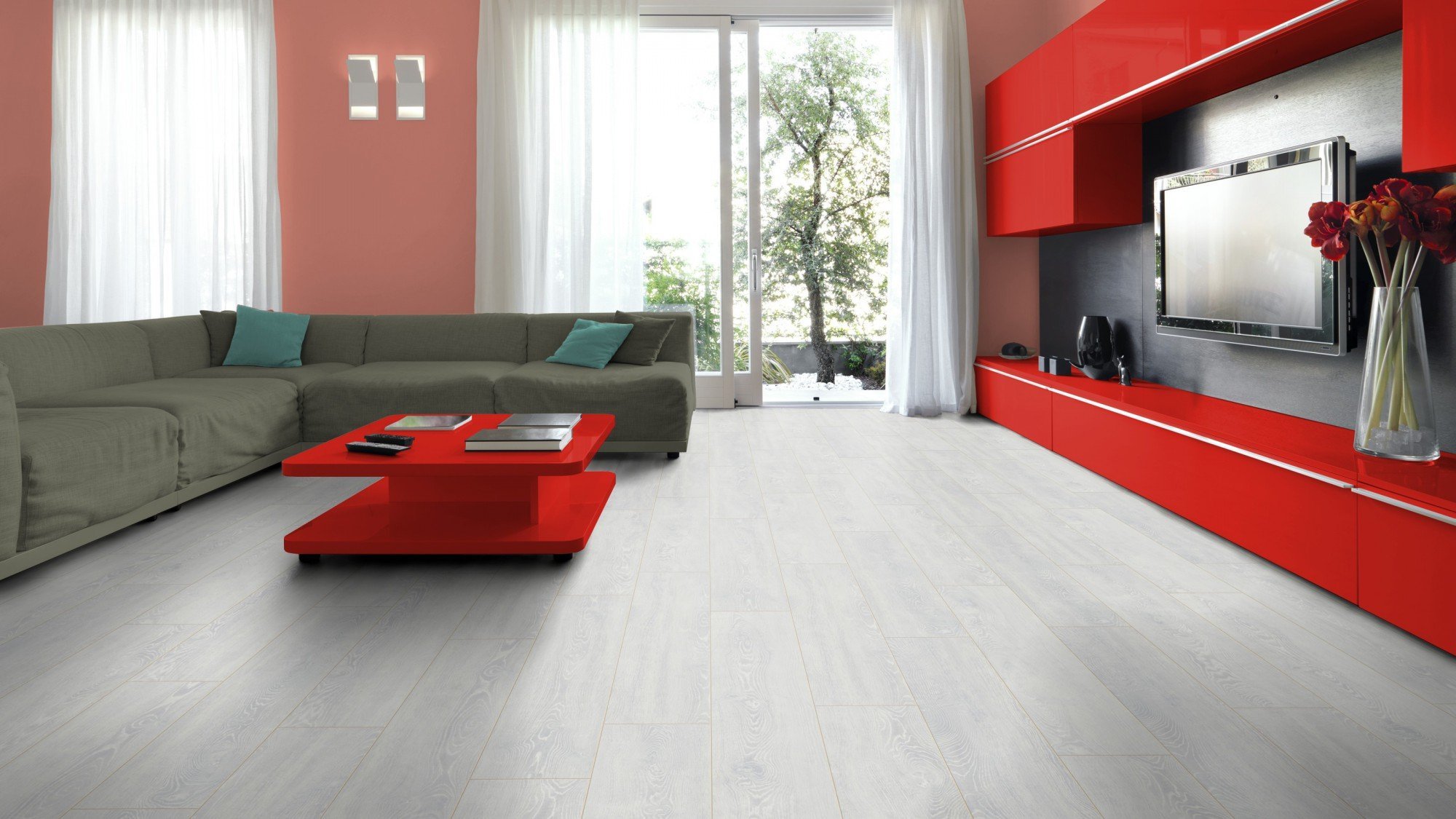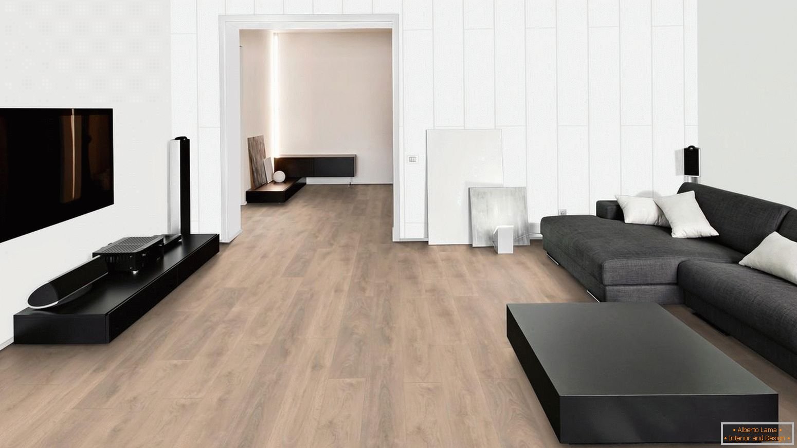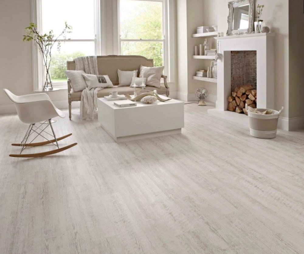 Белый ламинат в гостиной