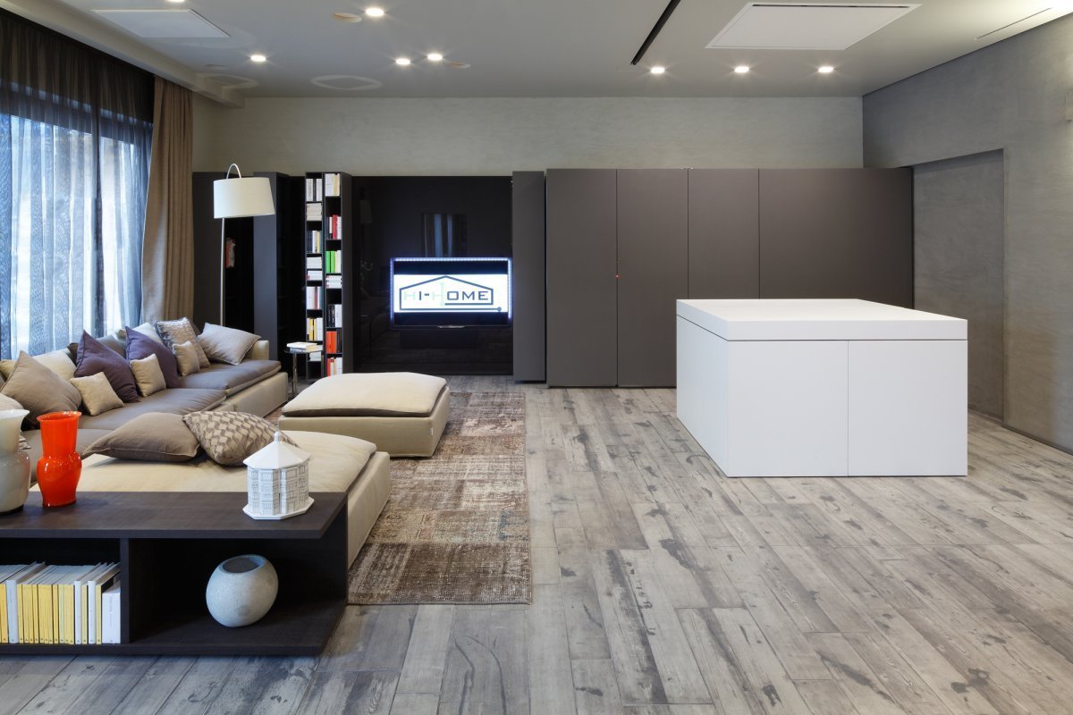 Серый пол в гостиной
