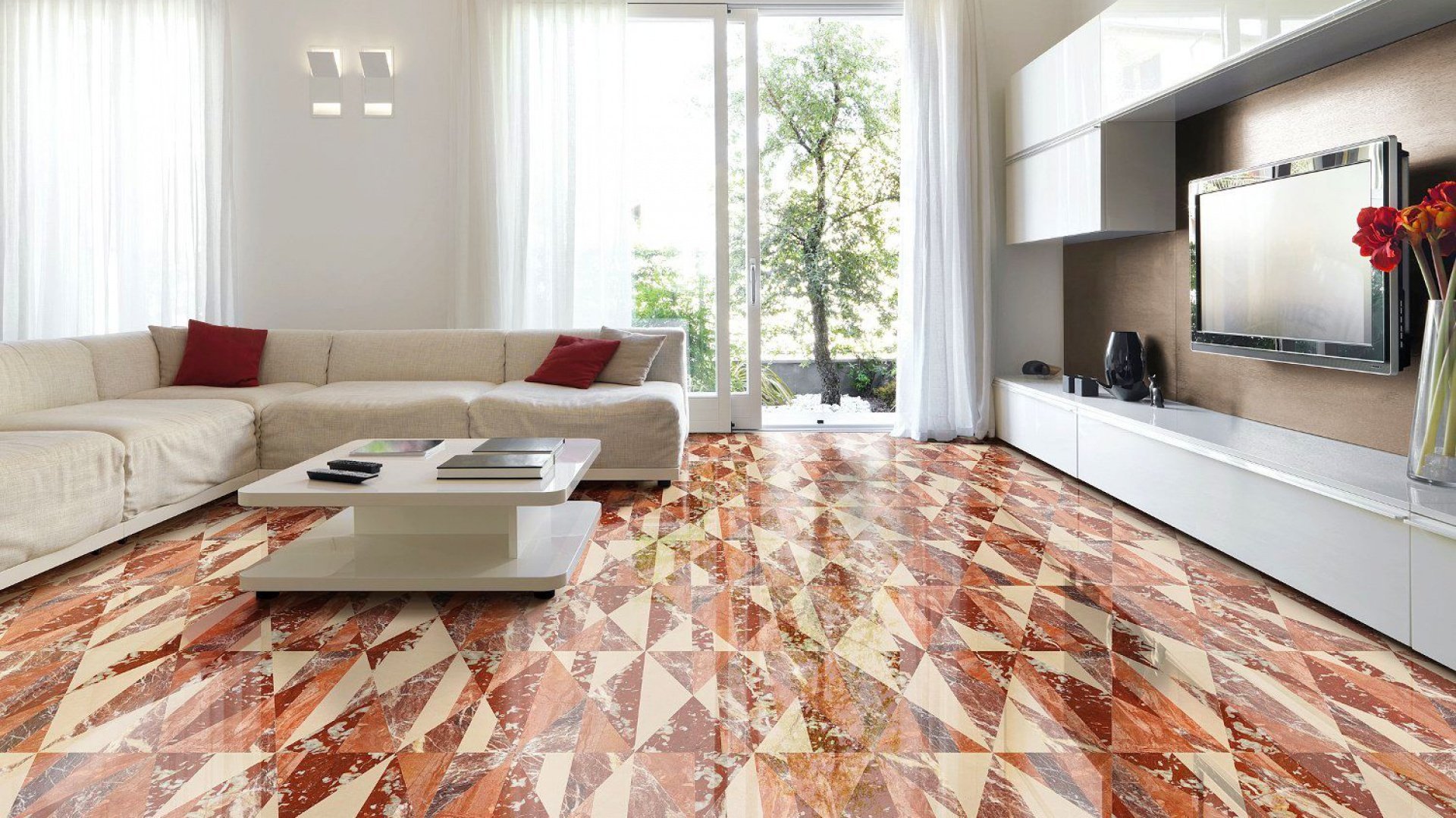 Серый линолеум в интерьере гостиной