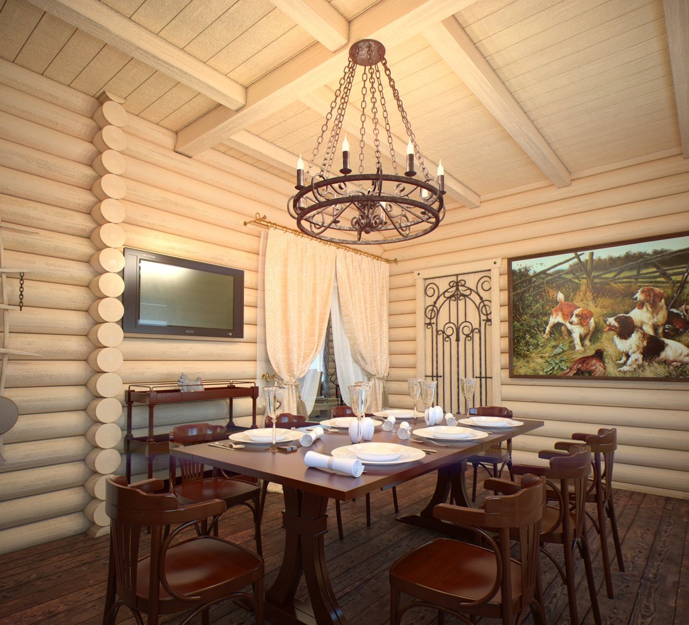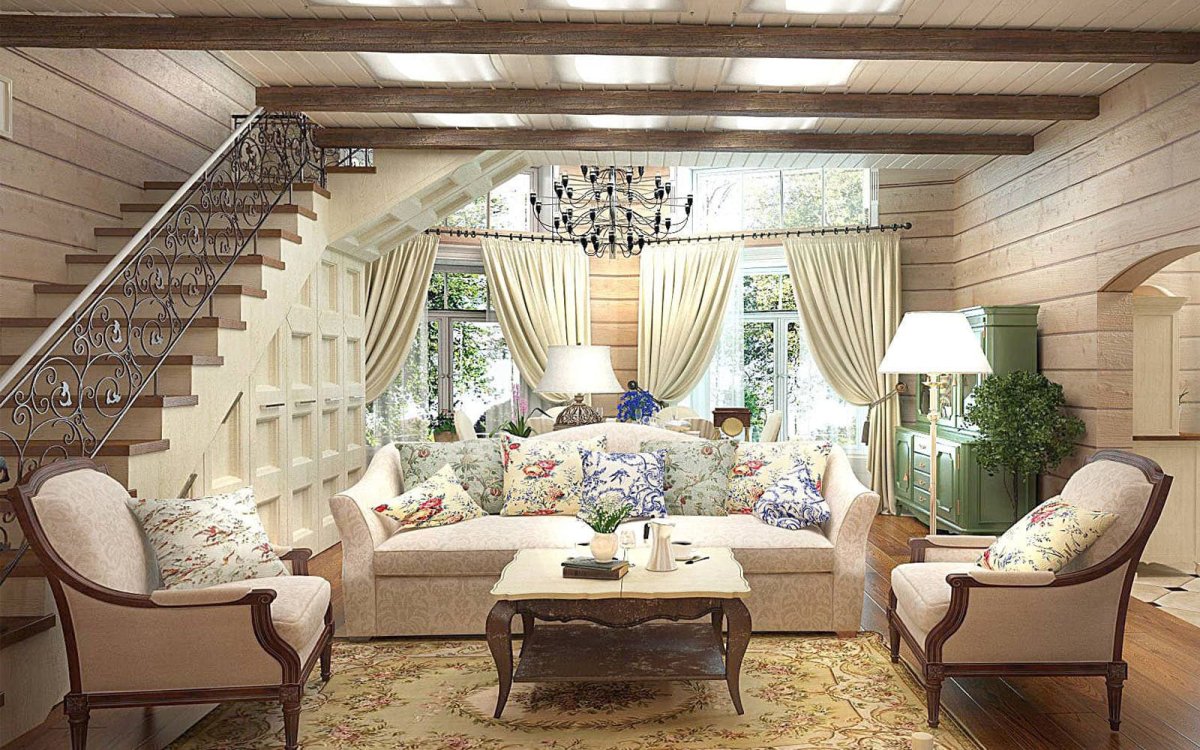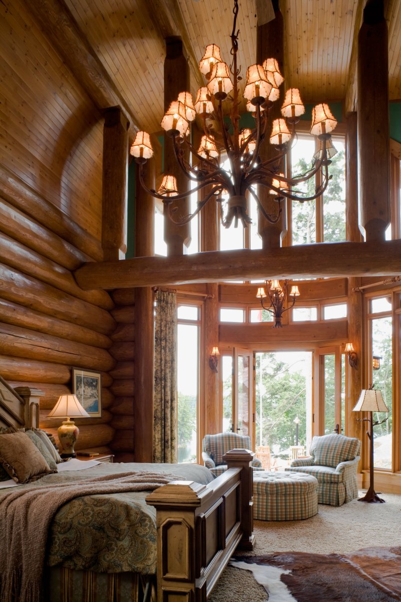 Спальни в бревенчатом доме в стиле Кантри,Прованс