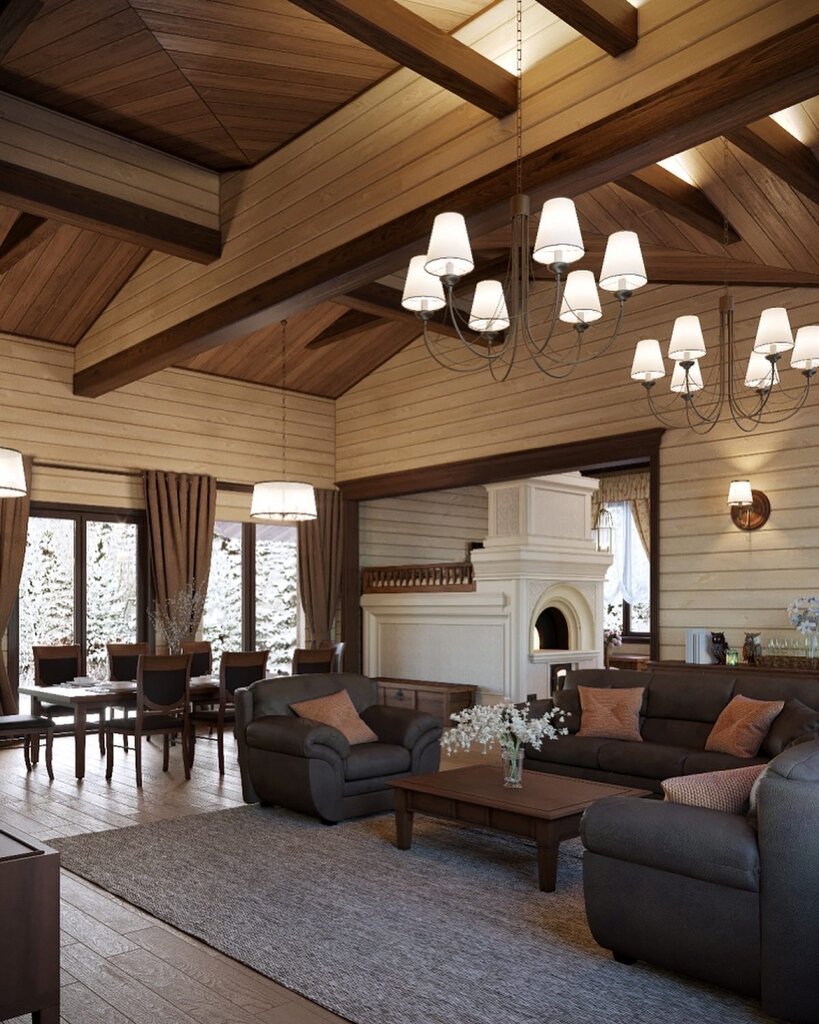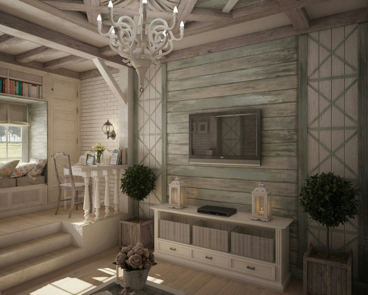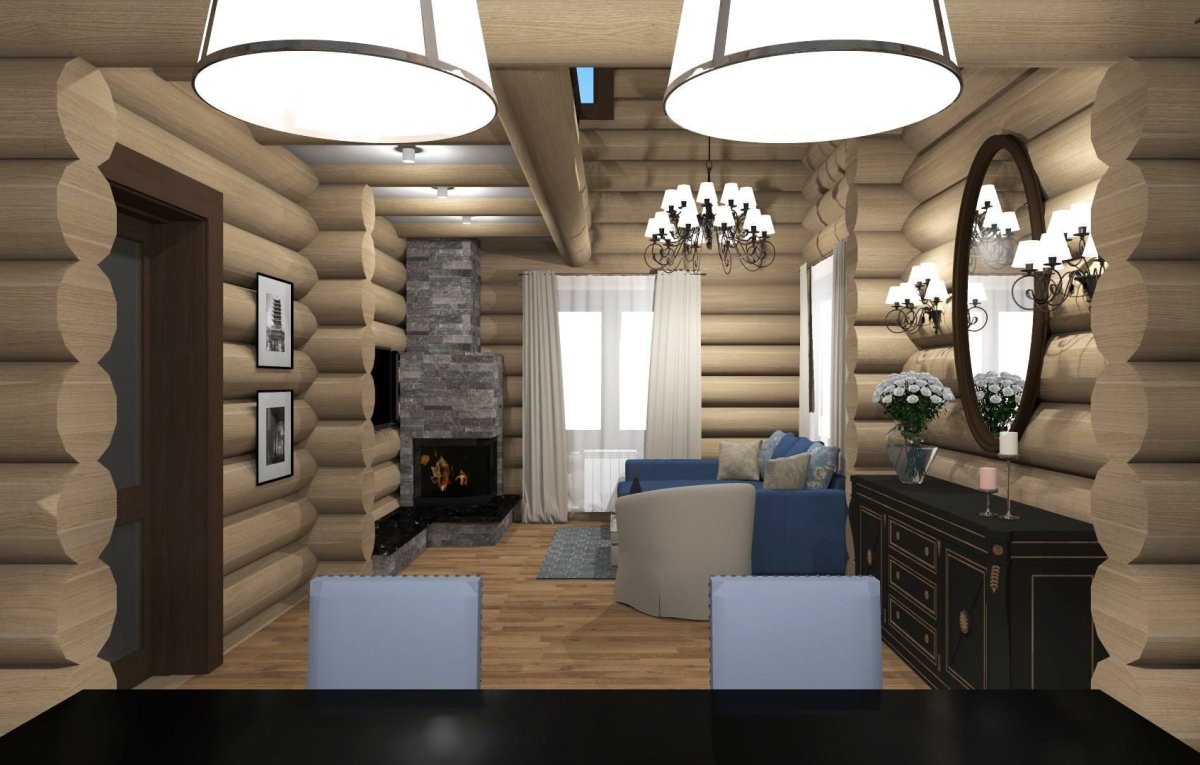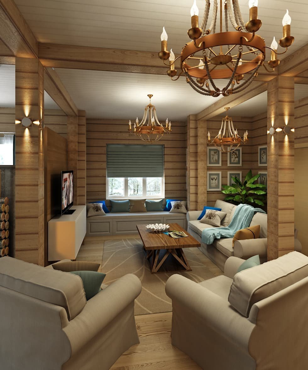 Спальни в бревенчатом доме в стиле Кантри,Прованс