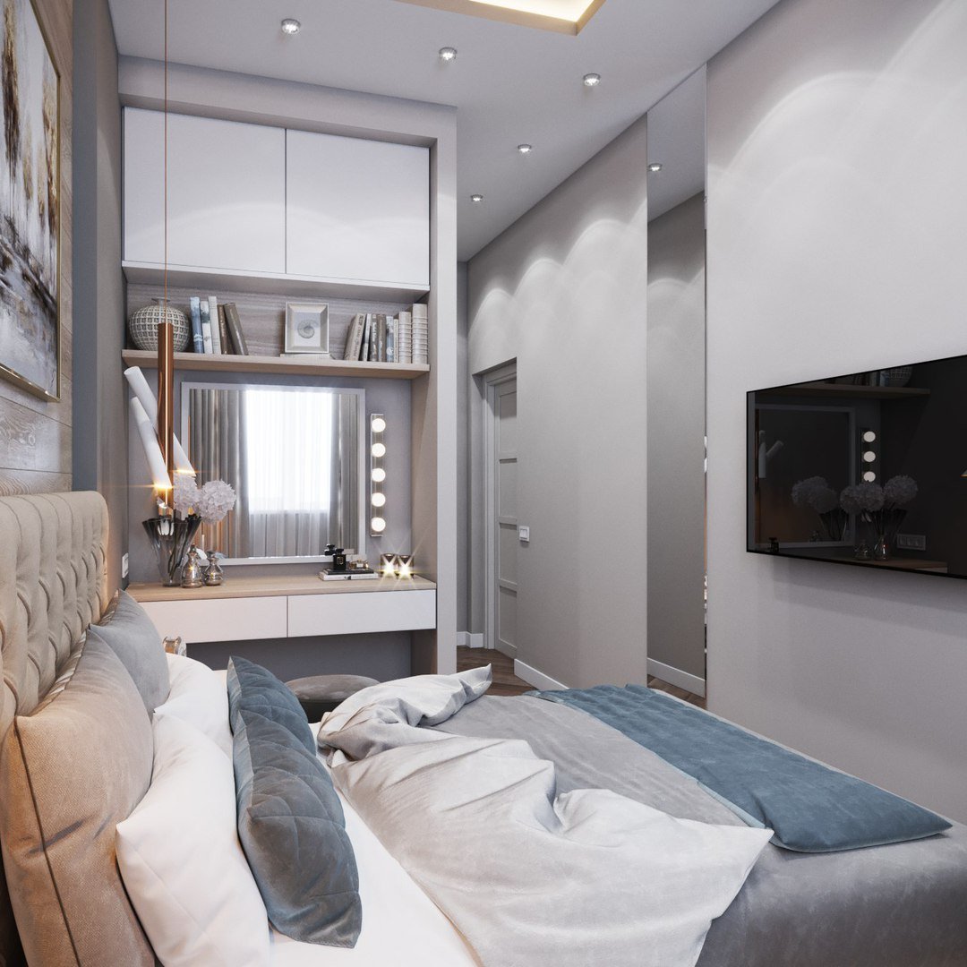 Интерьер узкой спальни в двухкомнатной хрущевке