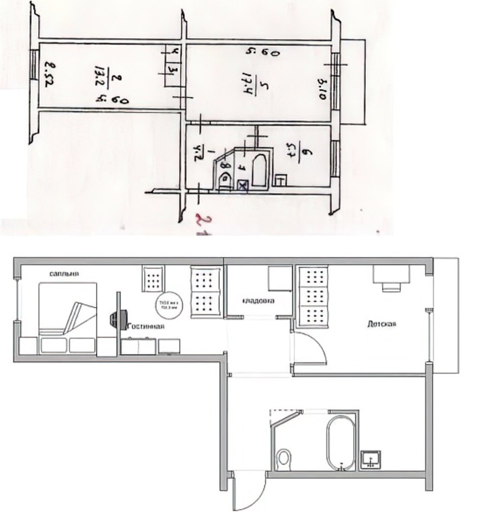 Перепланировка однушки хрущевки 30 кв.м в двушку