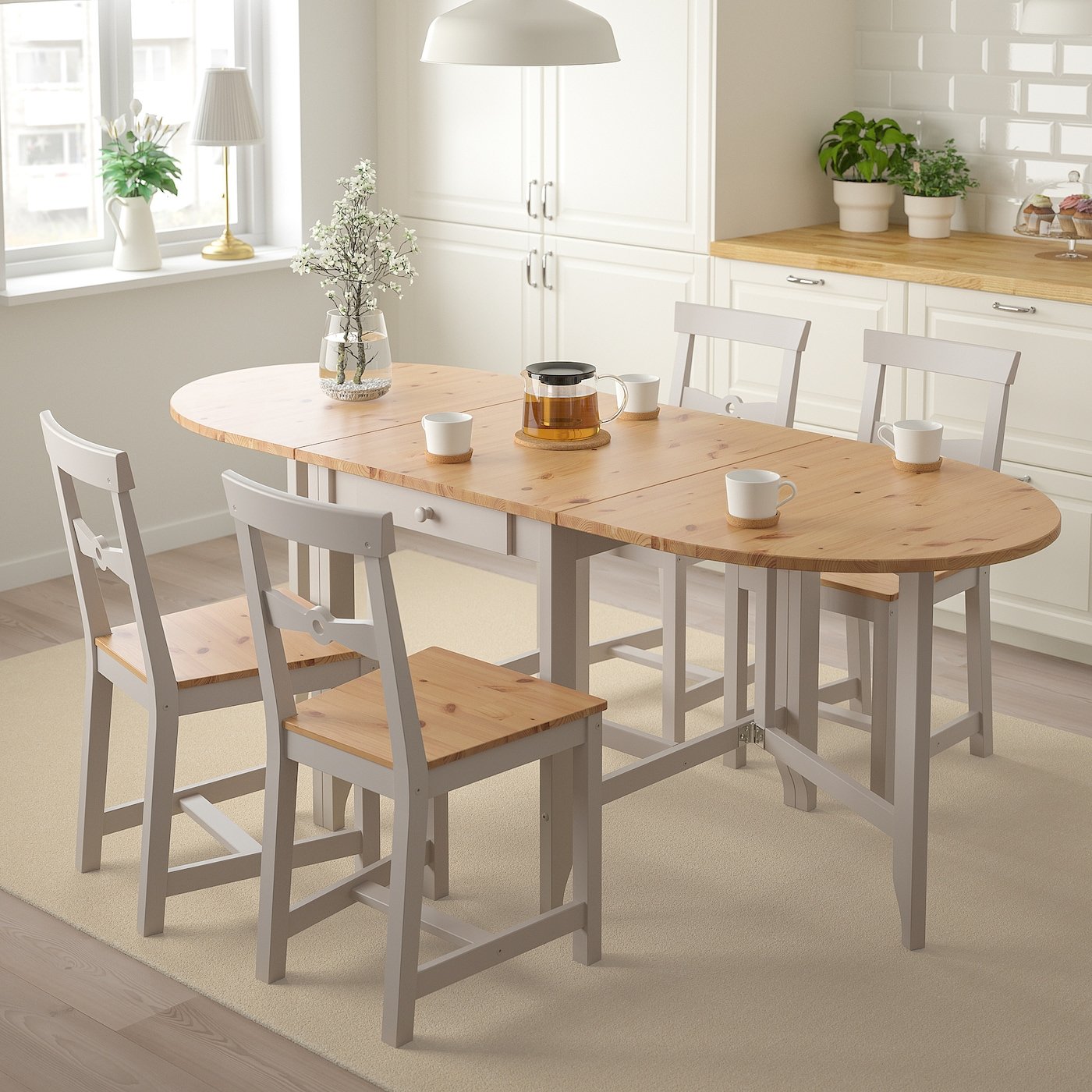 ГЭМЛЕБИ стол складной, светлая морилка антик, серый