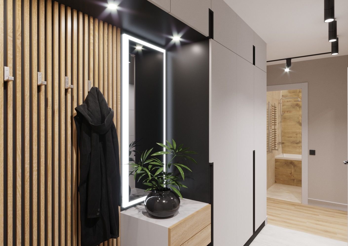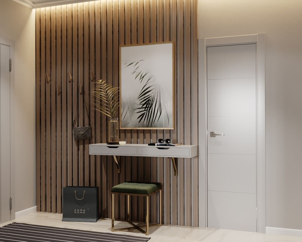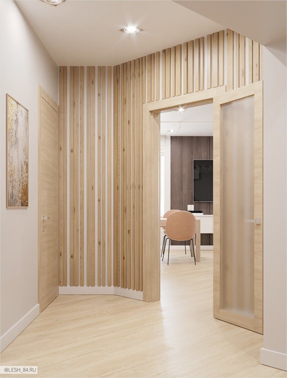 Прихожая с рейками на стене