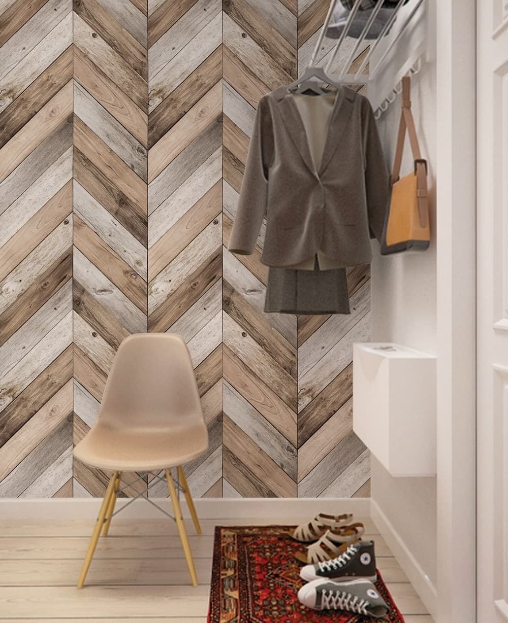 Обои под дерево в интерьере прихожей