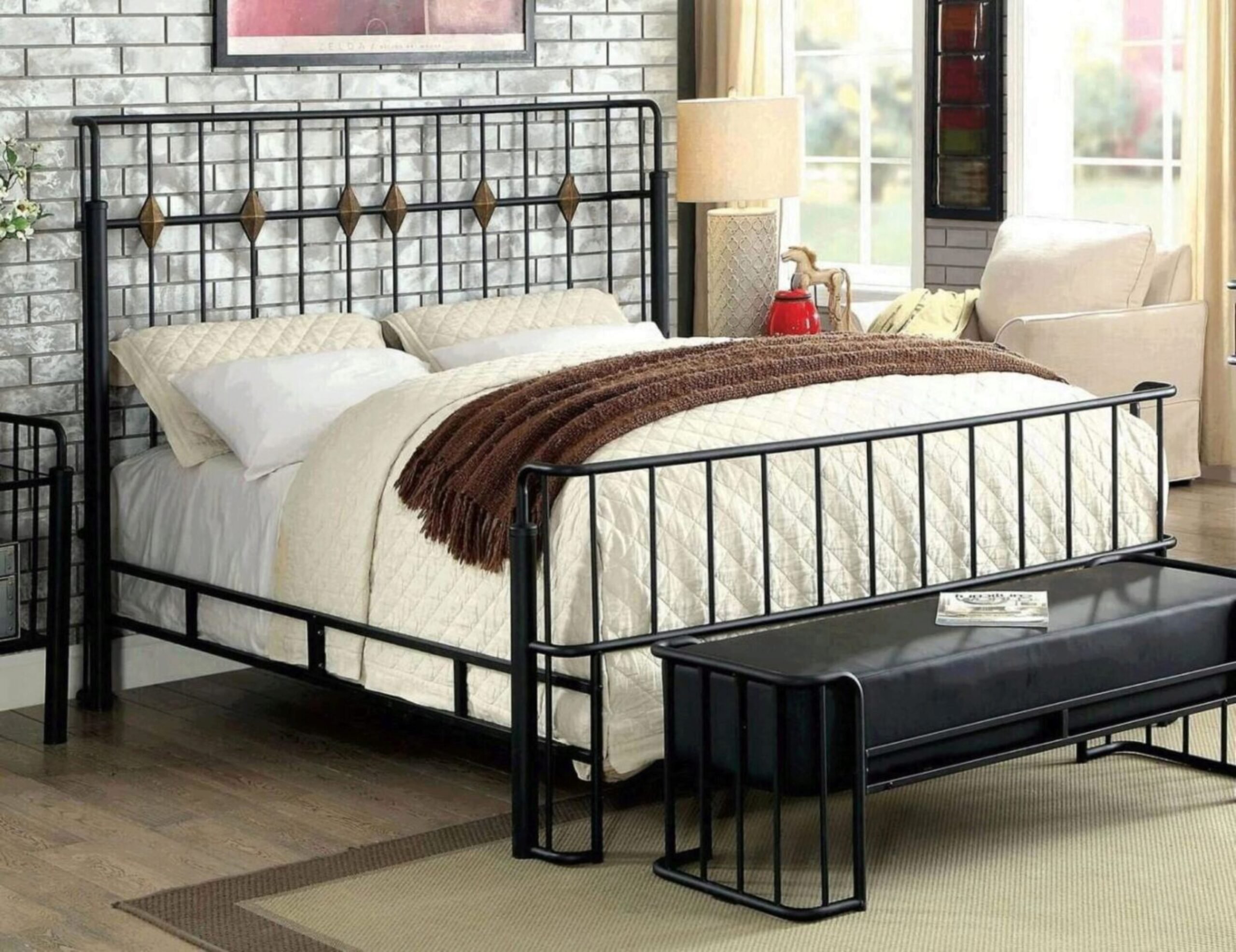 Старая металлическая кровать в интерьере