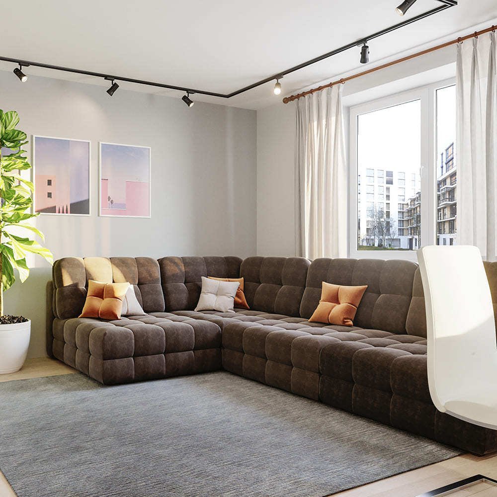 Современный угловой диван в гостиную
