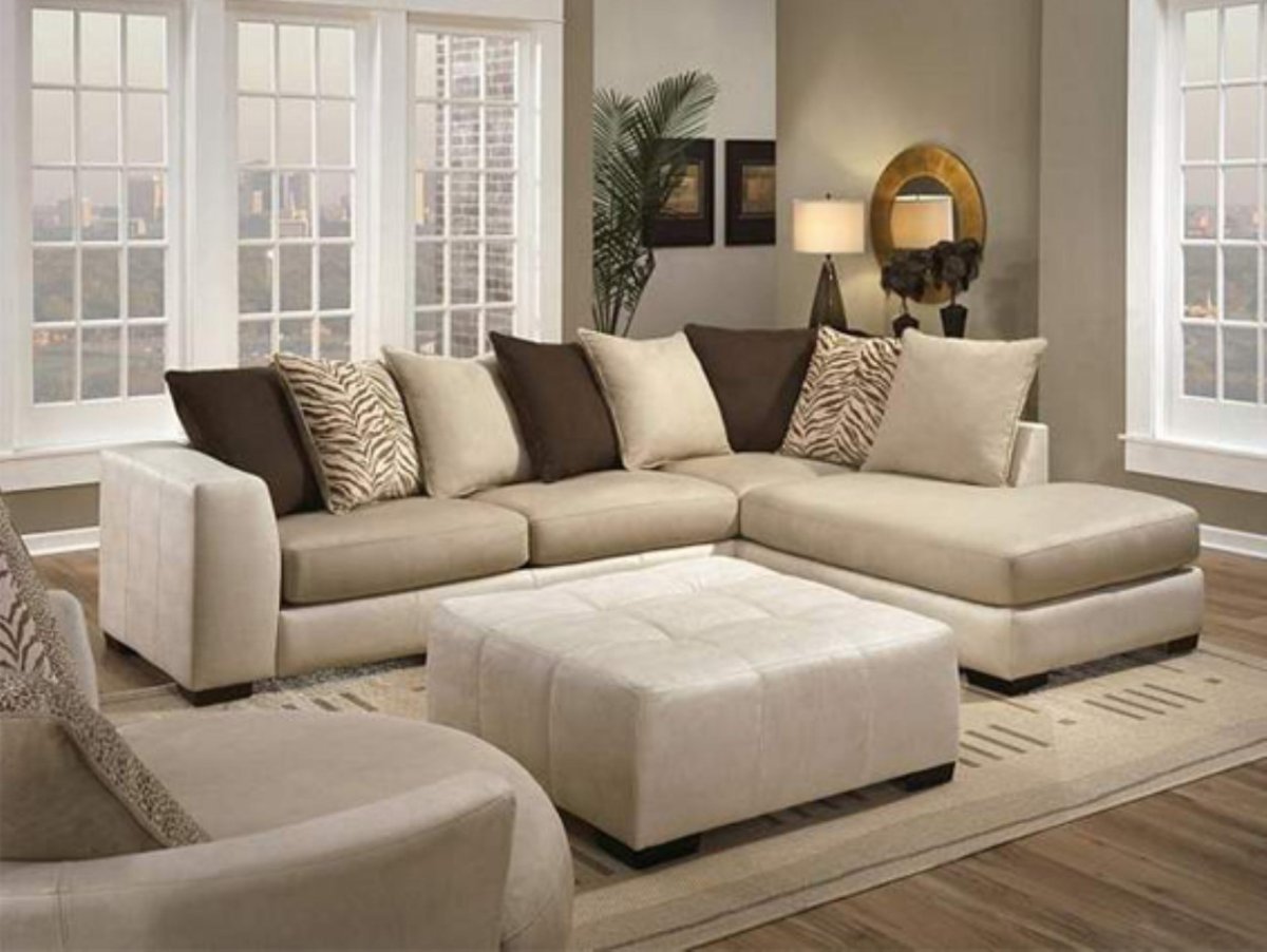 Бежевый диван с подушками