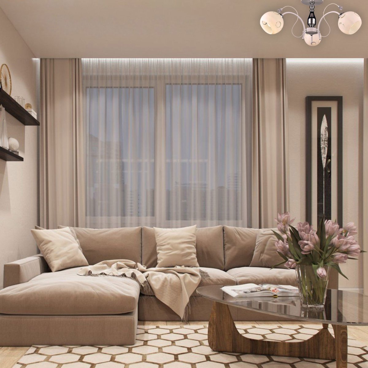 Гостиная в бежевых тонах