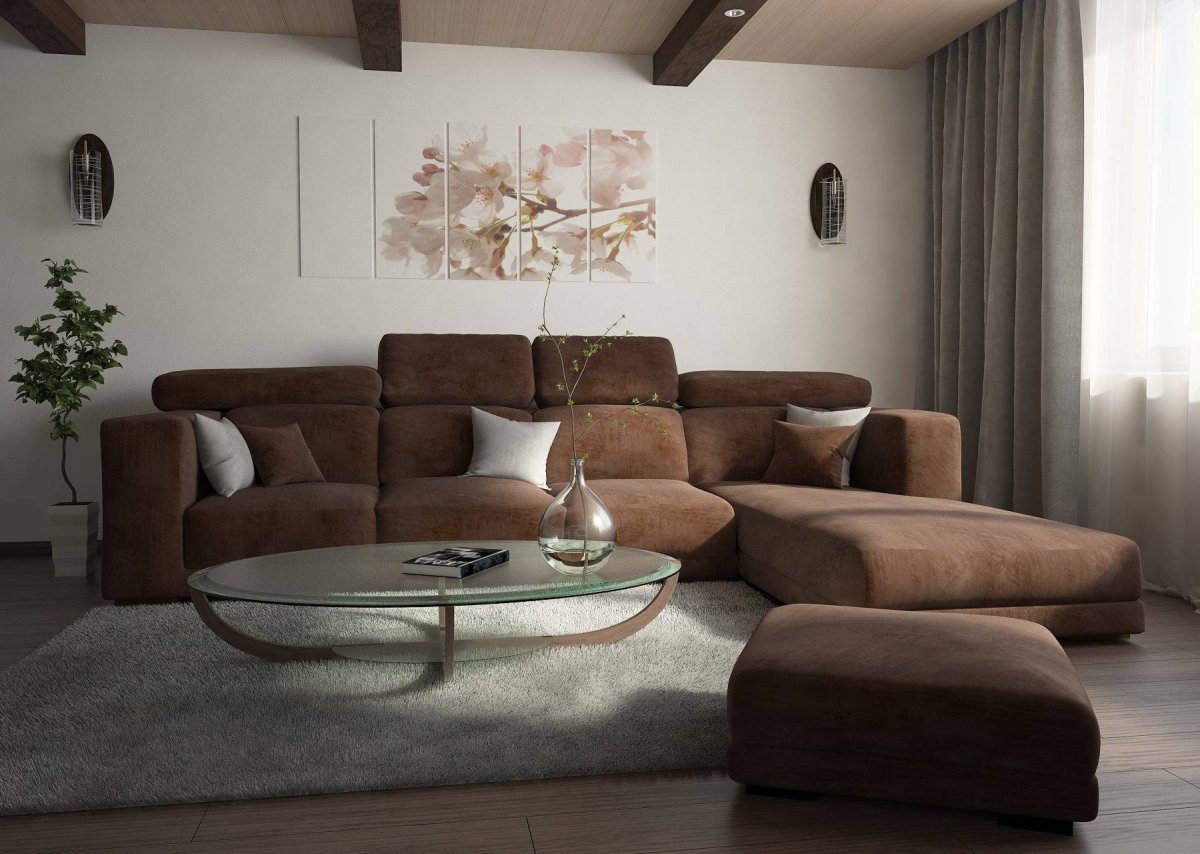 Коричневый диван в интерьере гостиной