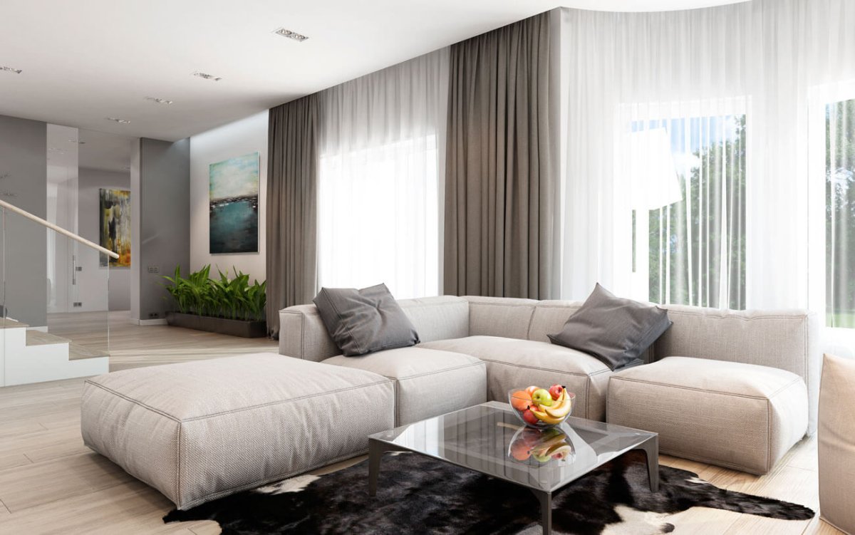 Светло-серый диван в интерьере