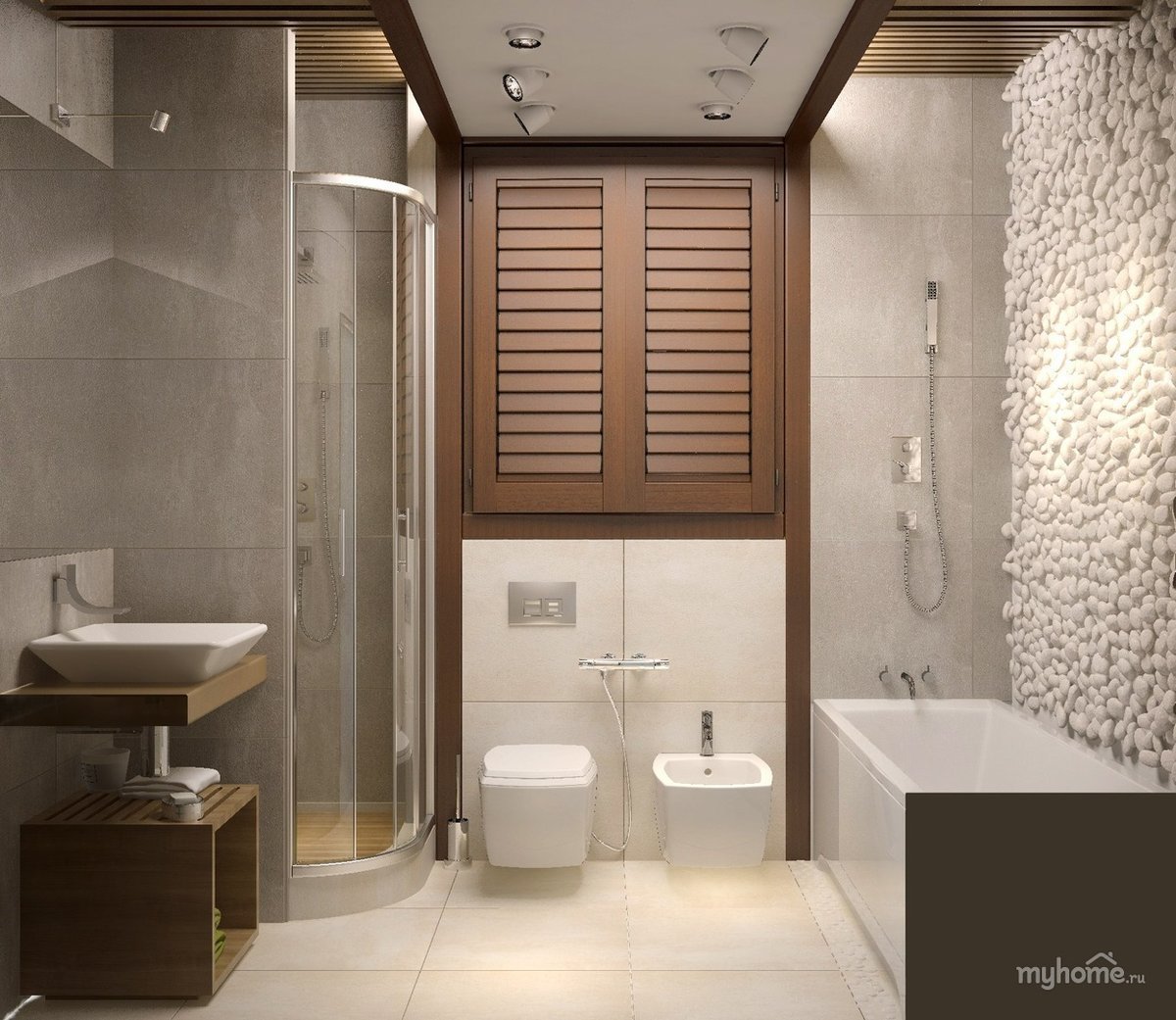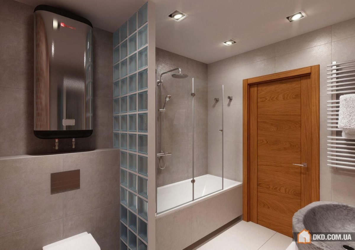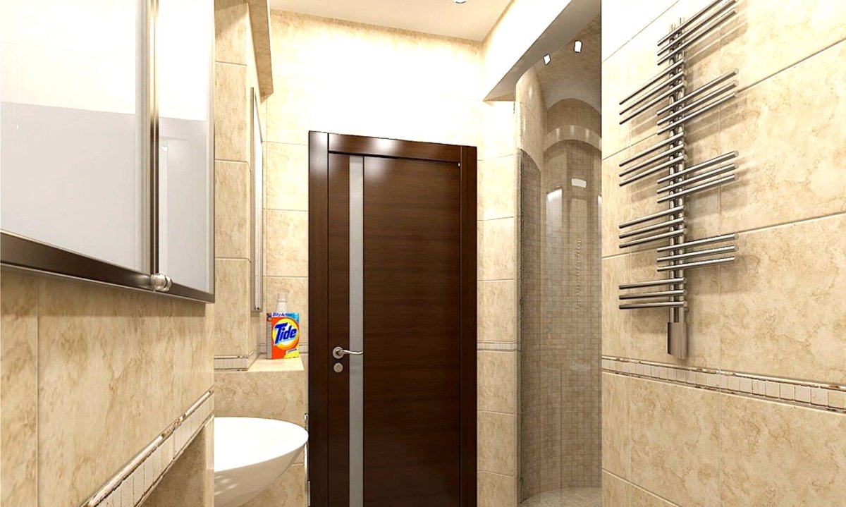 Дизайн ванной с душевой и туалетом в доме 5 квадратов
