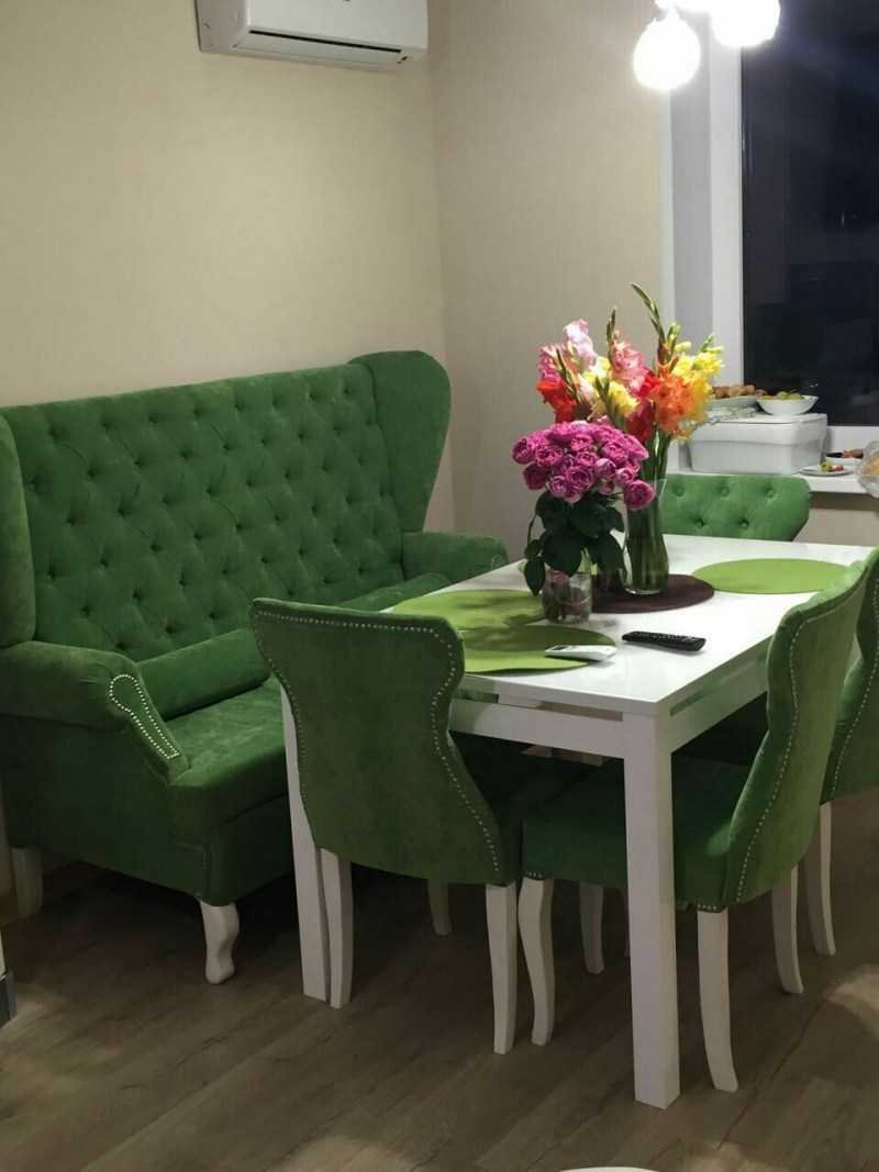 Зеленый диван на кухне