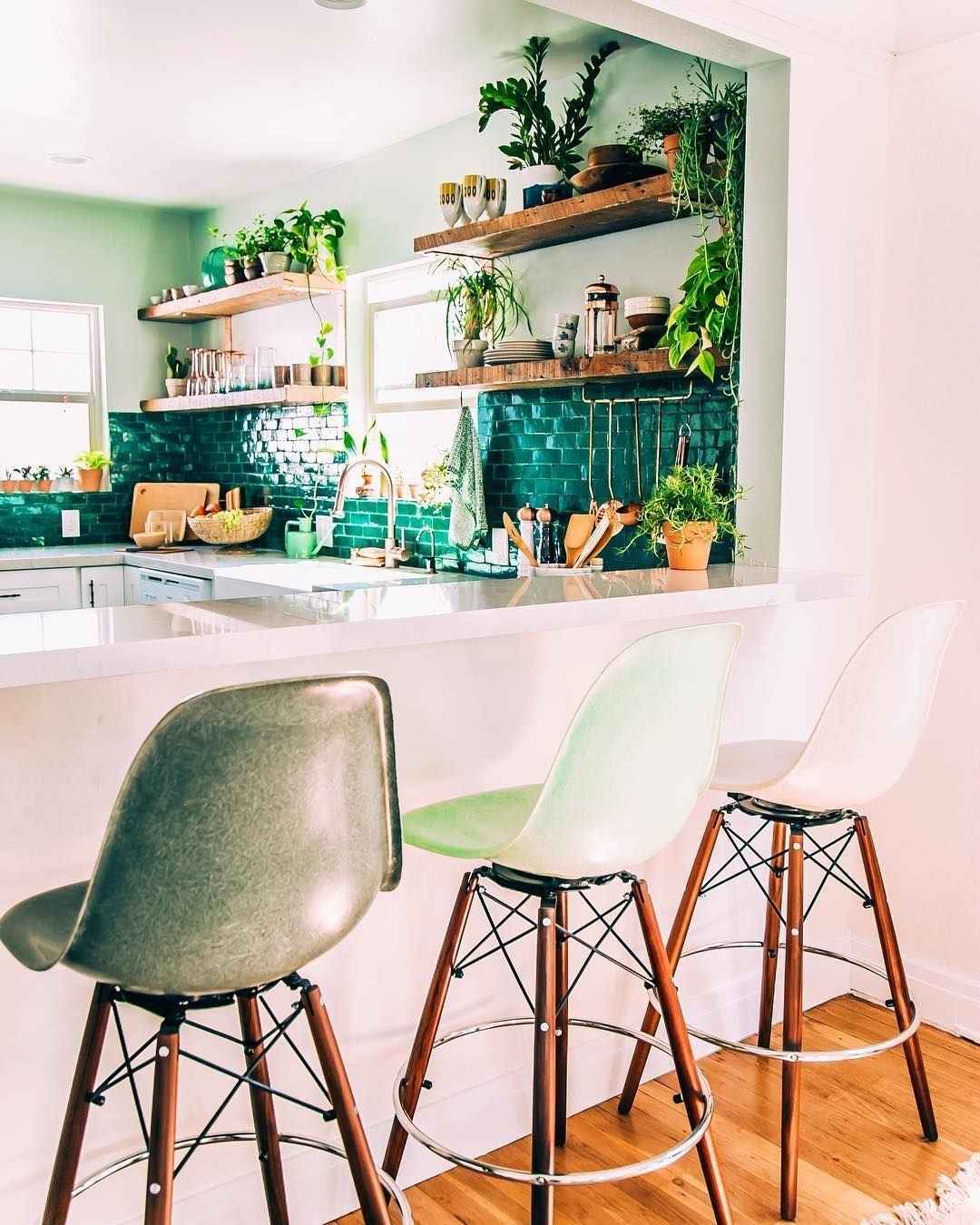 Изумрудные стулья на кухне