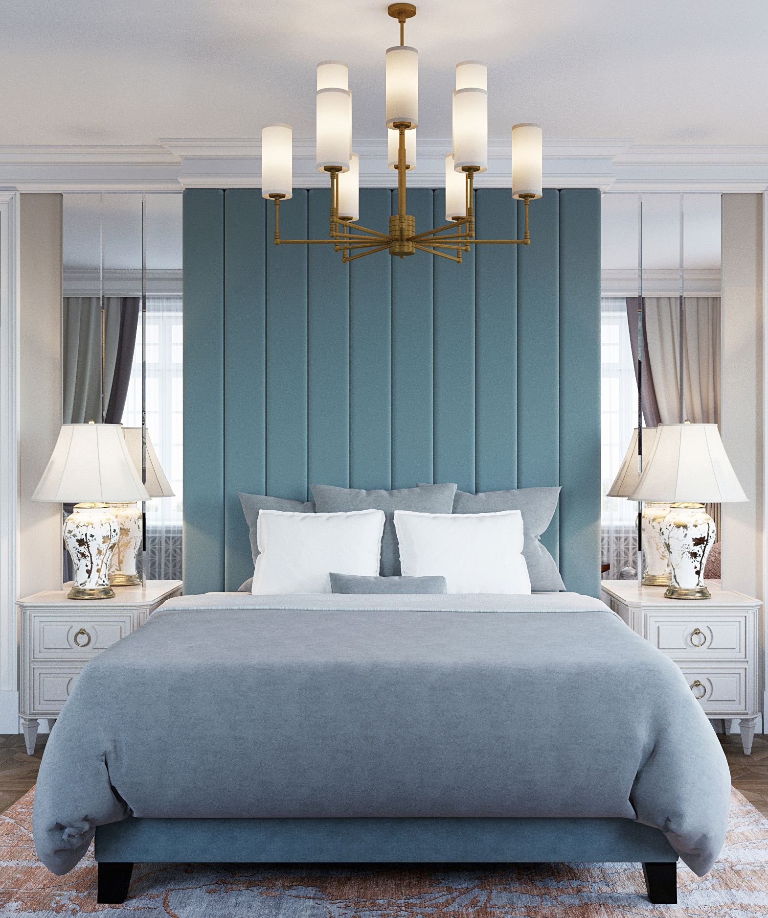 Спальня в серо голубых тонах