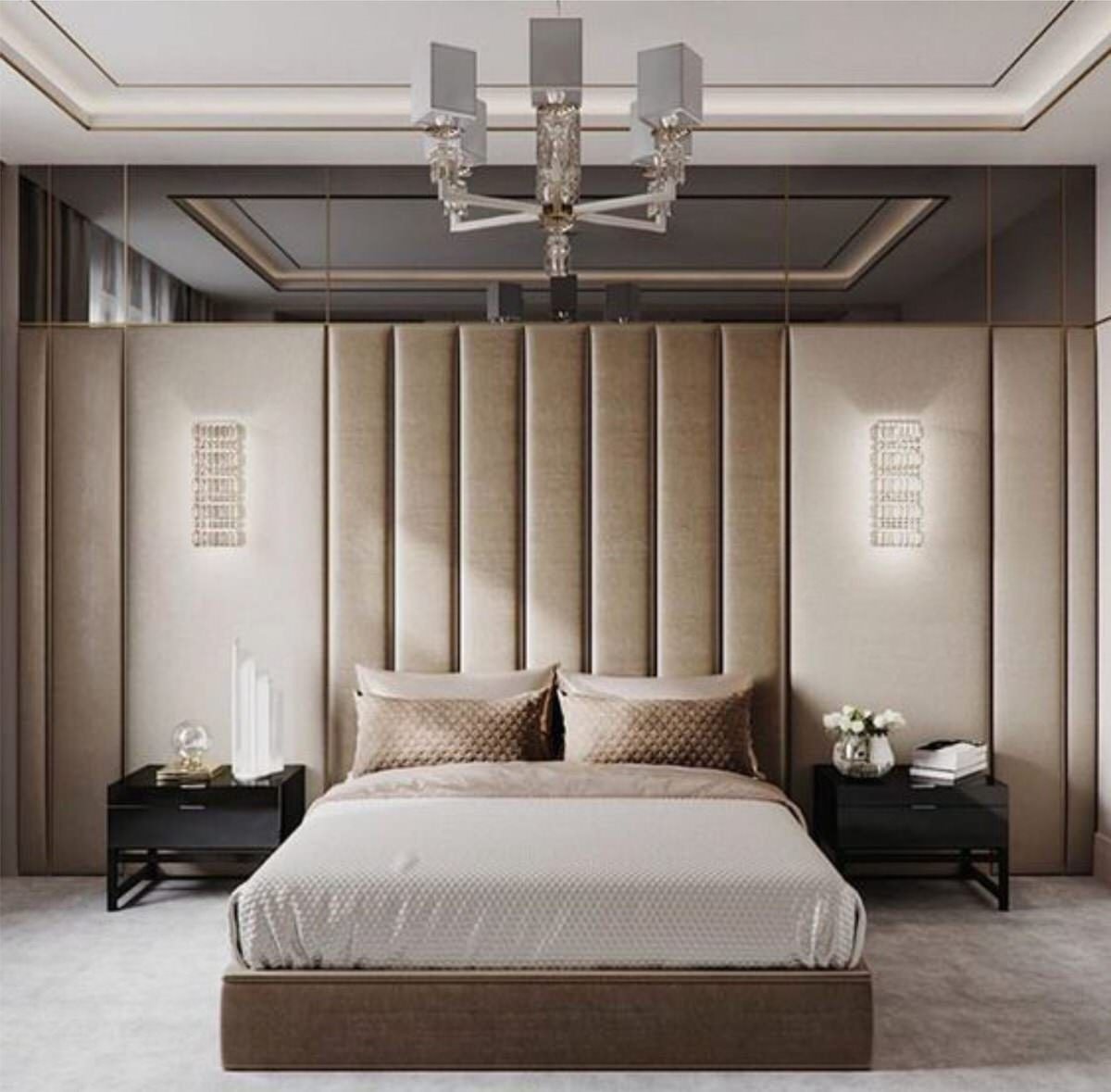 Зеркальные шкафы по бокам кровати
