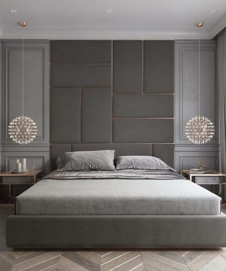 Мягкие панели в интерьере спальни