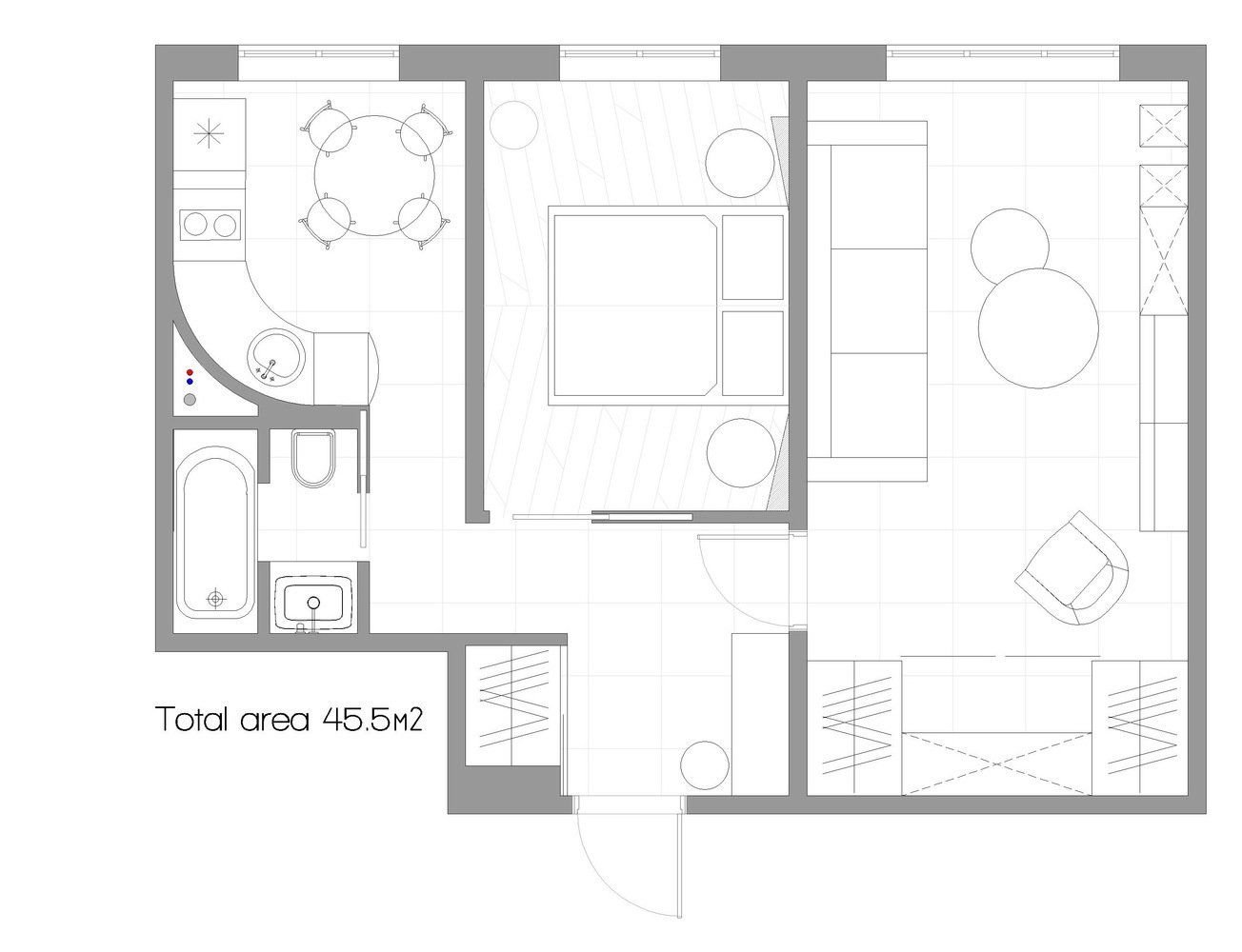 Планировка однушки для семьи с ребенком